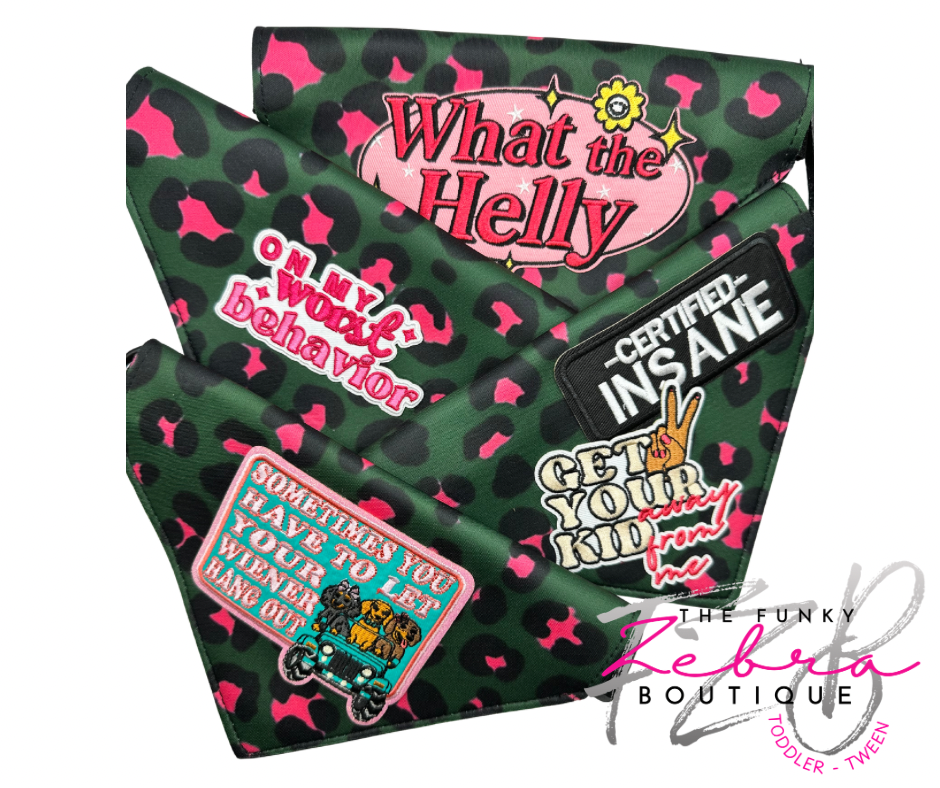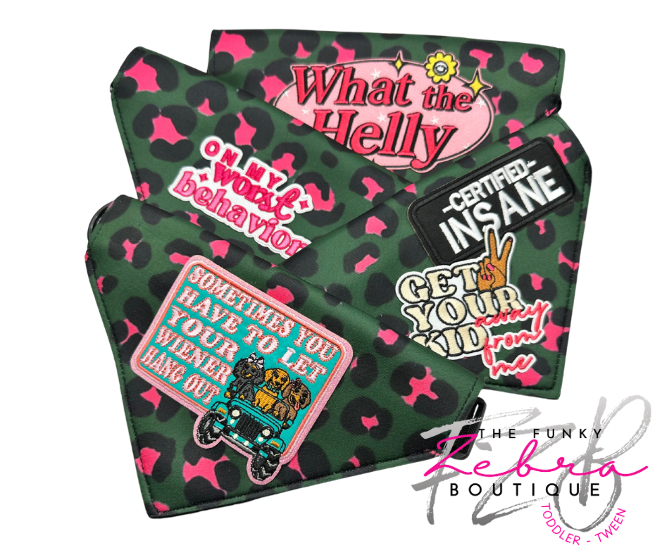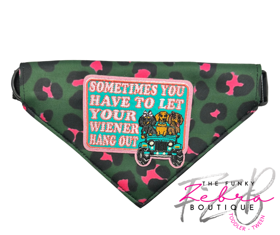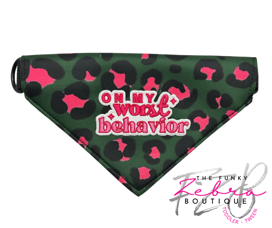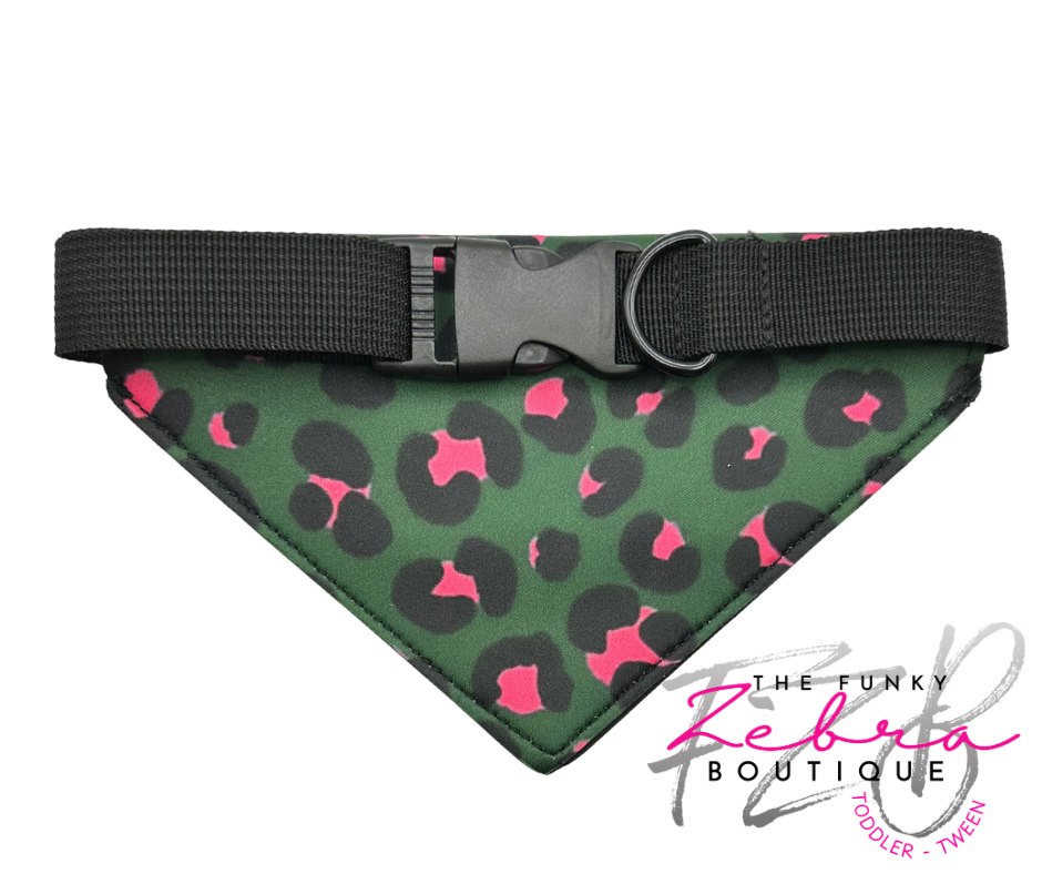 Pink and Green Leopard Print Neoprene Designer Dog Bandana Collar - Pick Your Patch Style