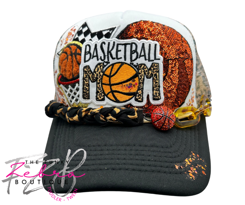 Adult Basketball Mom Leopard Print and Camouflage Trucker Hat