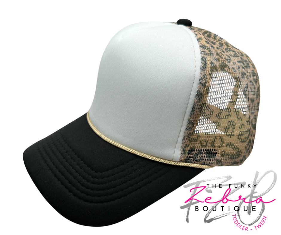 Adult White Foam Front Brown Leopard Print Mesh Back Trucker Hat