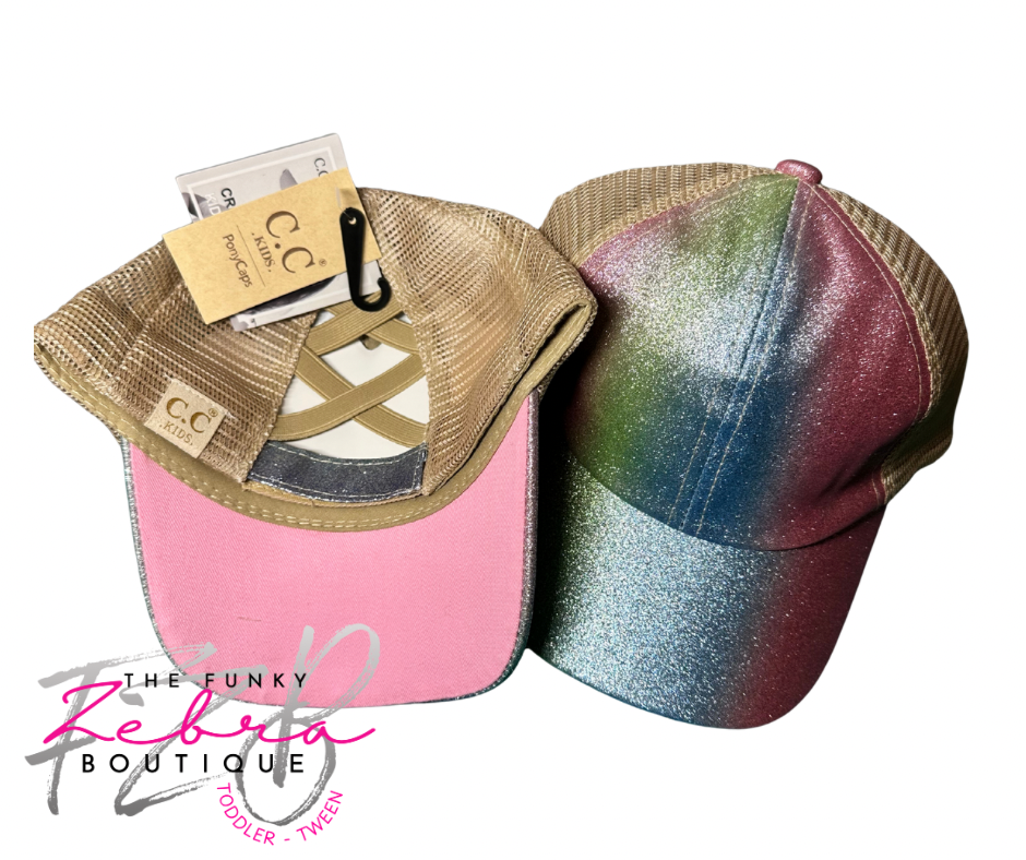 Kids Girls Glitter High Ponytail CC Baseball Hat Fits 3T-7/8 - Pick Your Color