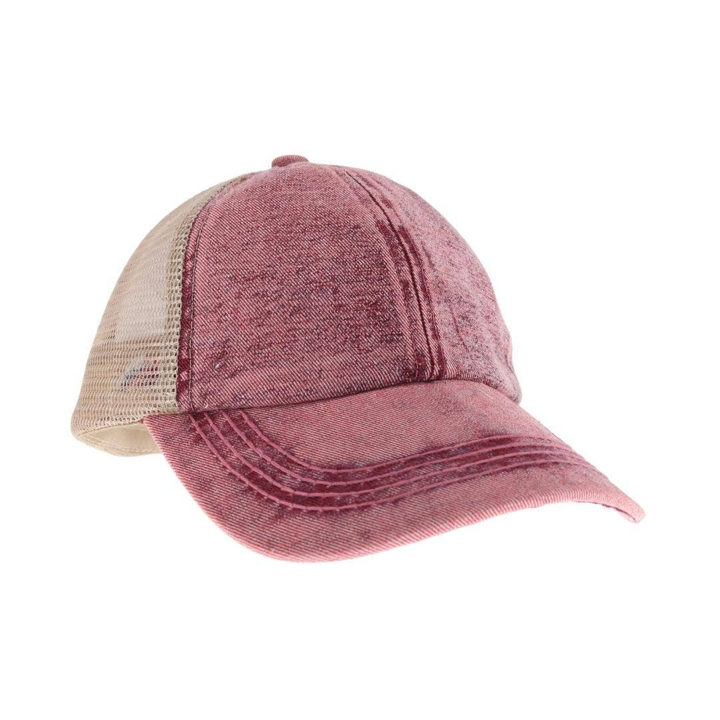 Kids Girls Stone Washed Denim Criss Cross High Pony Baseball Hat Fits 3T-7/8 - Pick Your Color