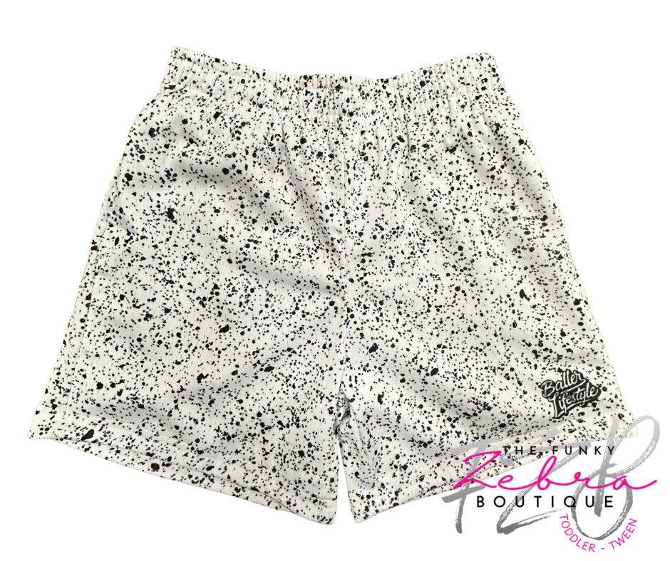 Baller Lifestyle Splatter Paint Black and White Baseball Shorts