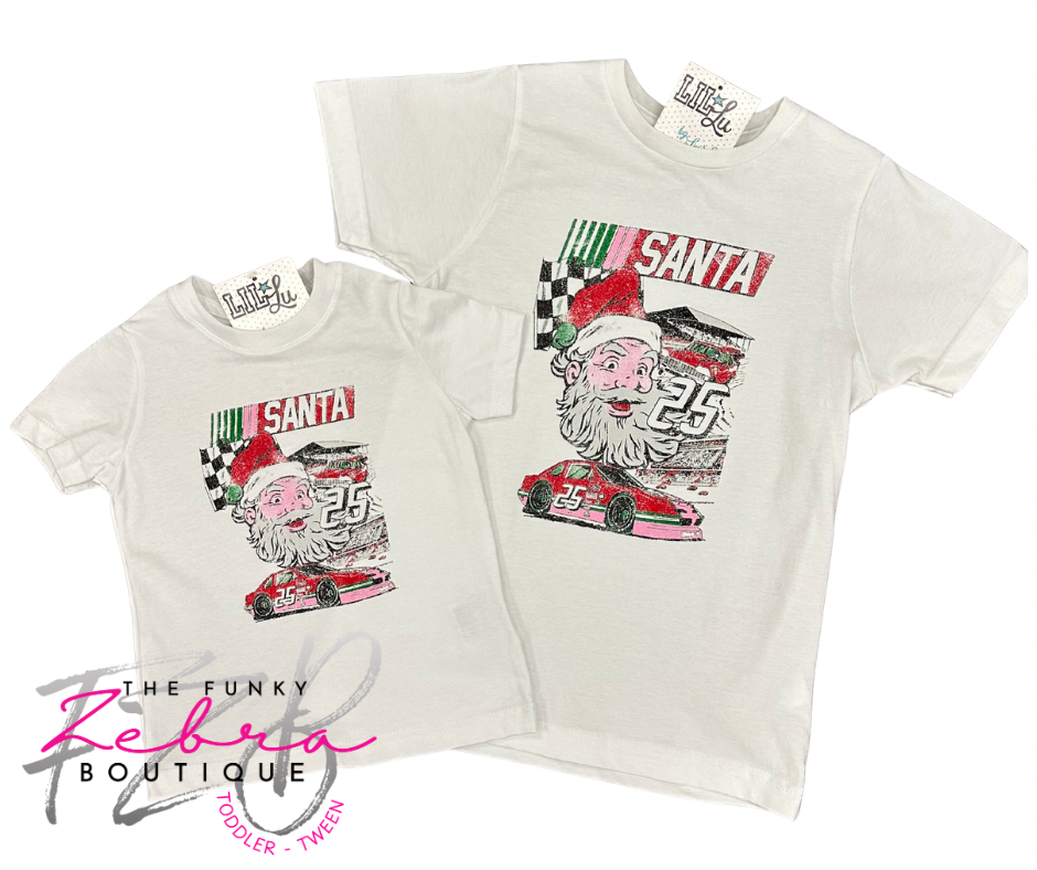 Christmas Race Car 25 Santa White Tee Size 2T-14/16