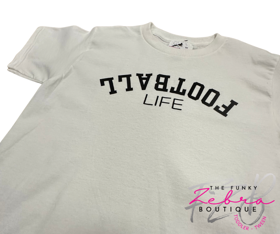 Show off your passion for football with our direct to fabric black vinyl football life tee by Baller Lifestyle. This stylish football t-shirt captures the essence of football lifestyle off the field. High-quality and breathable fabric. Ideal for school, game days, vacations and casual days throwing at the field. Baller Lifestyle shirts is a must have for any football enthusiast with a love for the game.Β