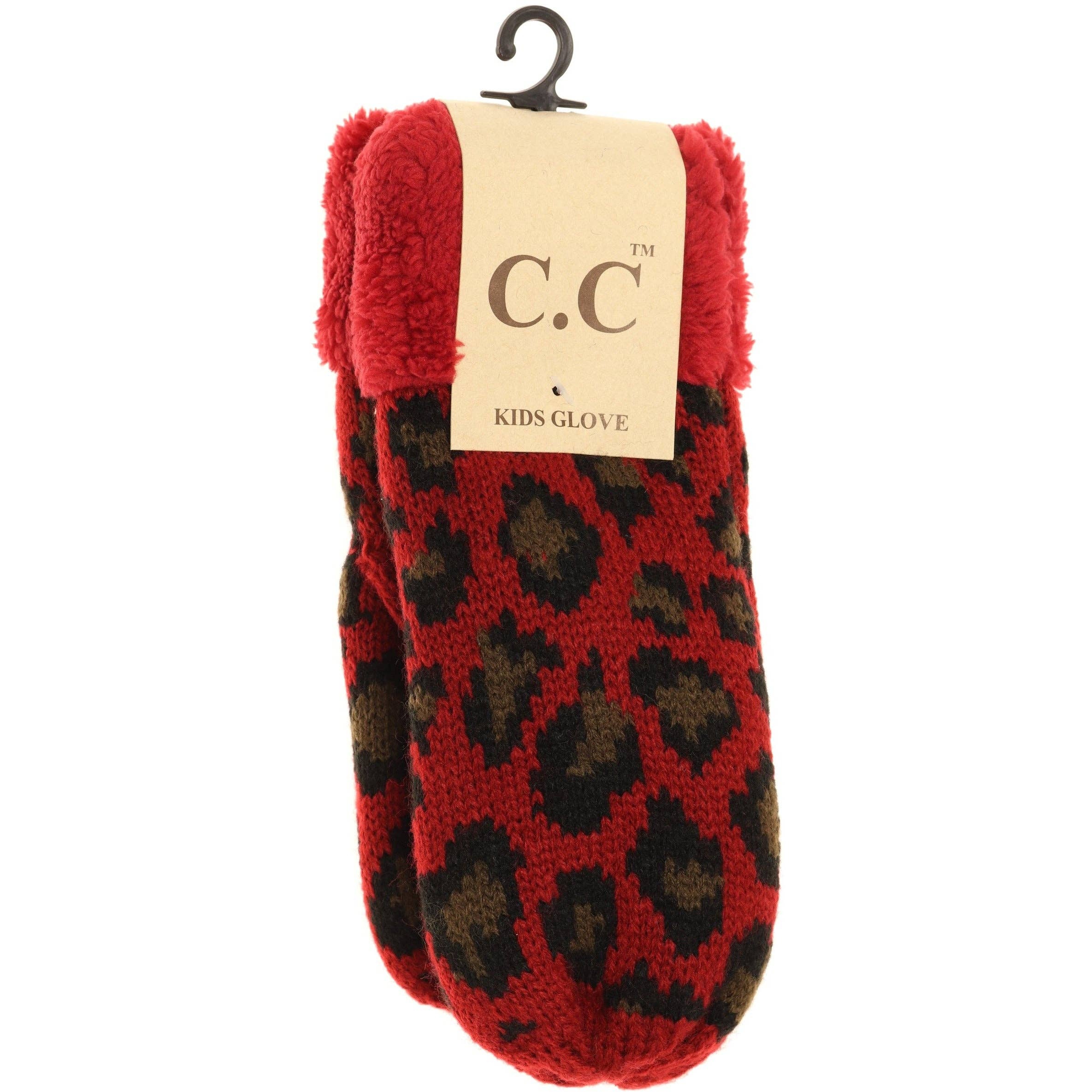 Introducing the C.C. Kids Red Leopard Print Knit Mittens – the perfect blend of fun and functionality for your little ones!