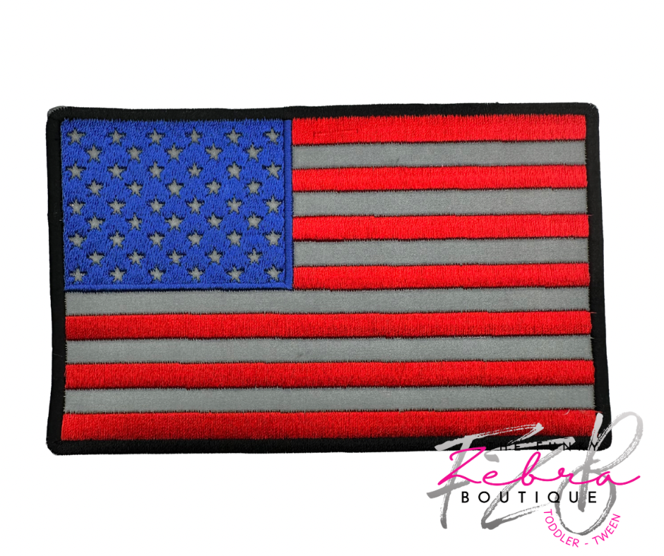 American Flag Reflective LARGE Iron On Patch 6" x 4"