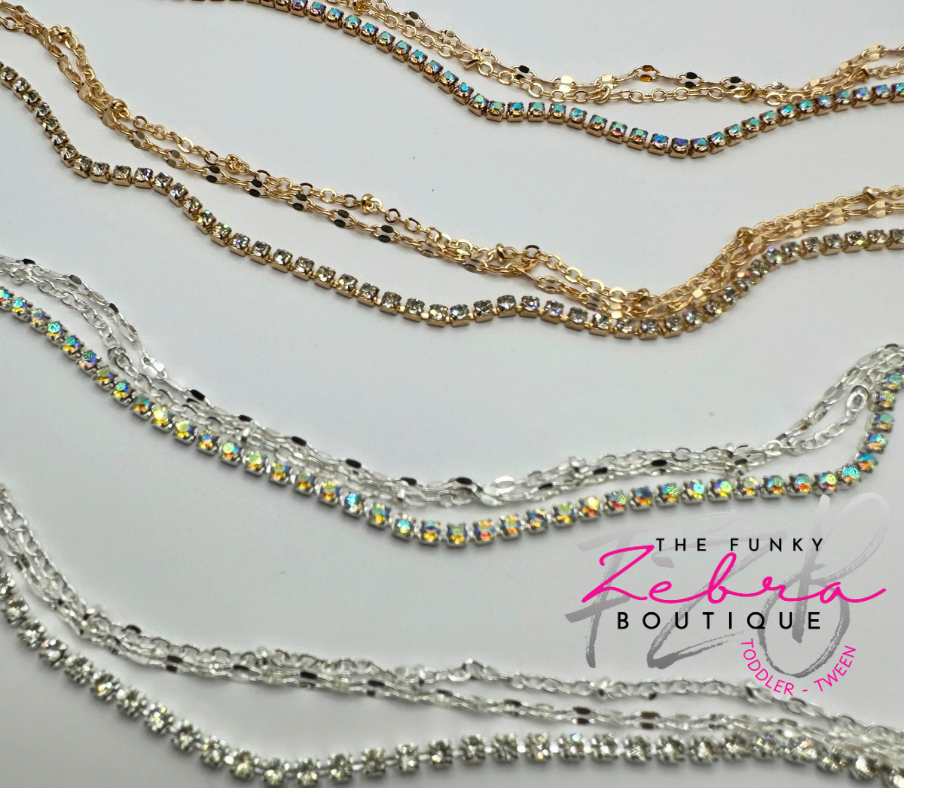 Hat Chain Dainty Three Row Gold or Silver Rhinestone Chain with - Pick Your Style