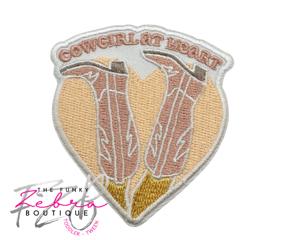 Cowgirl At Heart Upside Down Boots Embroidered Iron On Patch