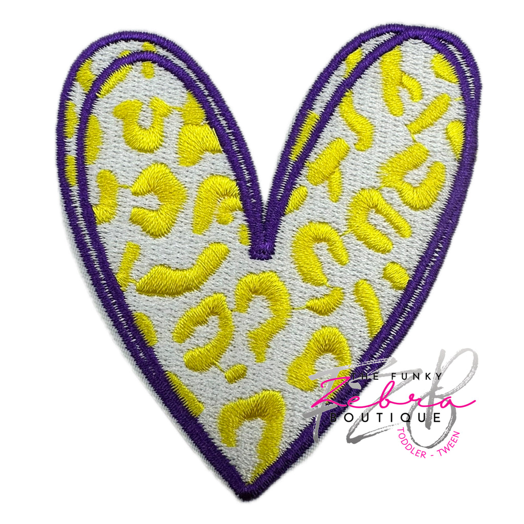 Purple and Yellow Leopard Print Heart Embroidered Iron On Patch