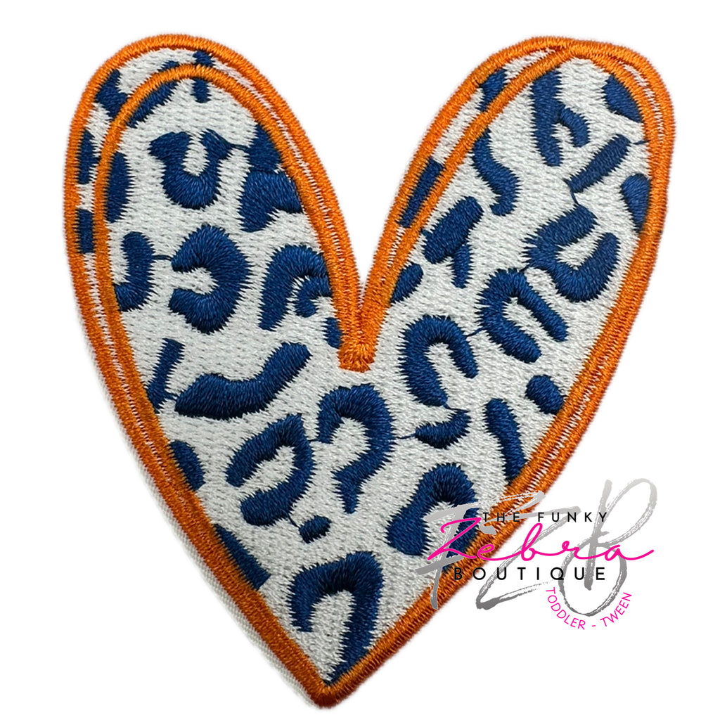 Royal Blue and Orange Leopard Print Heart Embroidered Iron On Patch