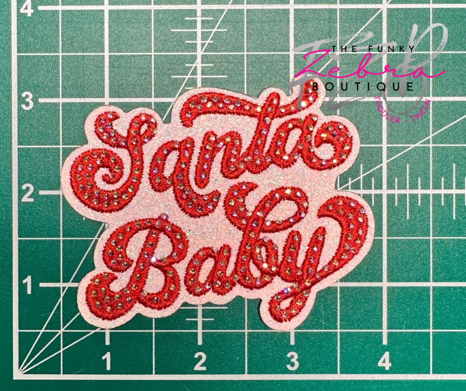 Christmas Santa Baby Rhinestone and Glitter Embroidered Iron On Patch