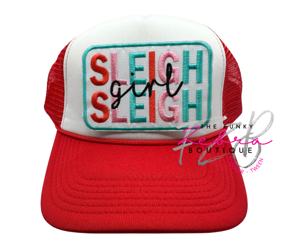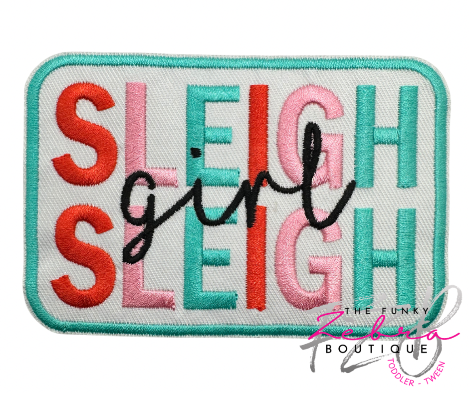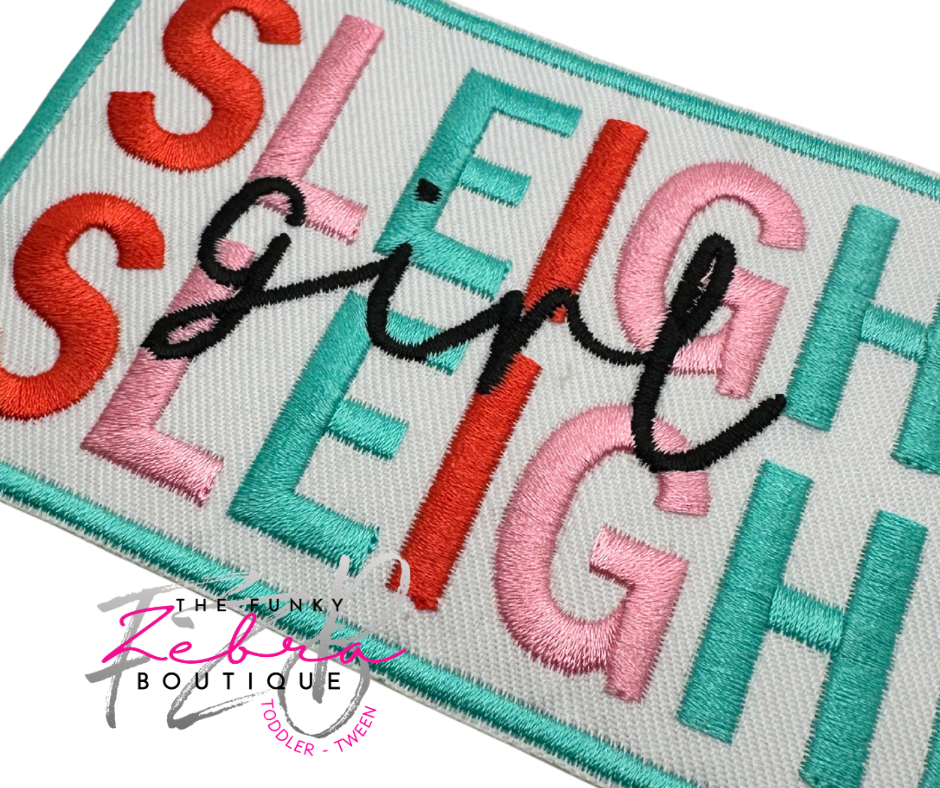 Turquoise, pink & red Sleigh Girl Sleigh embroidered iron on patch.