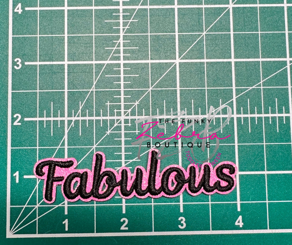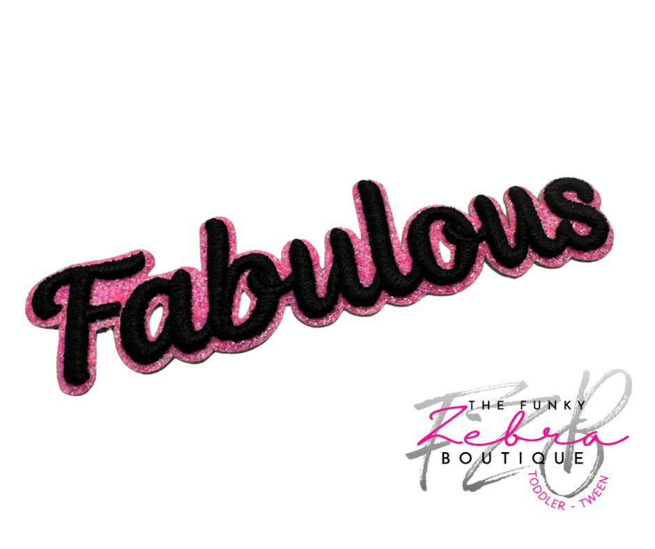 Fabulous! This fabulous word embroidered patch features a 3D puff black thread outlined in neon pink glitter.