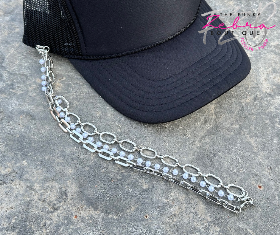 Hat Chain Silver Paperclip Pearl Decorative SET OF 3 Chains