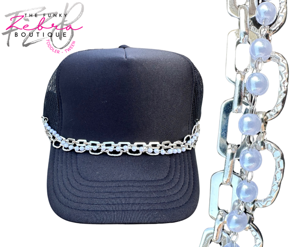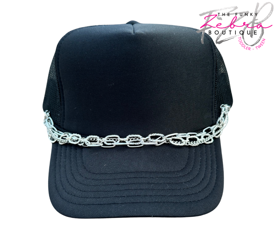 A distinctive way to enhance your favorite trucker hat with flair. These silver metal chains are a perfect accent for any hat.  Mix the set of wear just one. The chains come with lobster clasps for easy attachment to the hats mesh section.