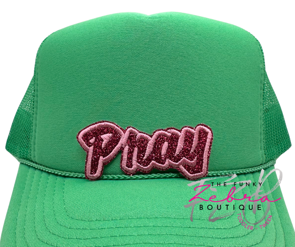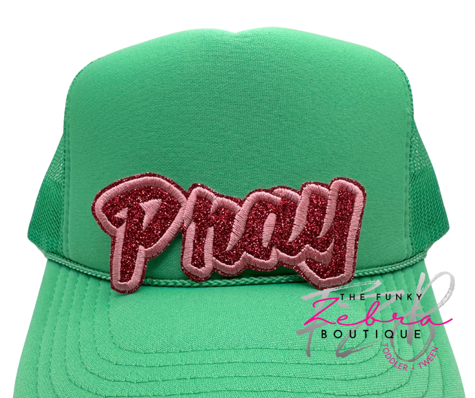 Pray Cherry Pink Glitter Iron On Patch - Pick Your Size
