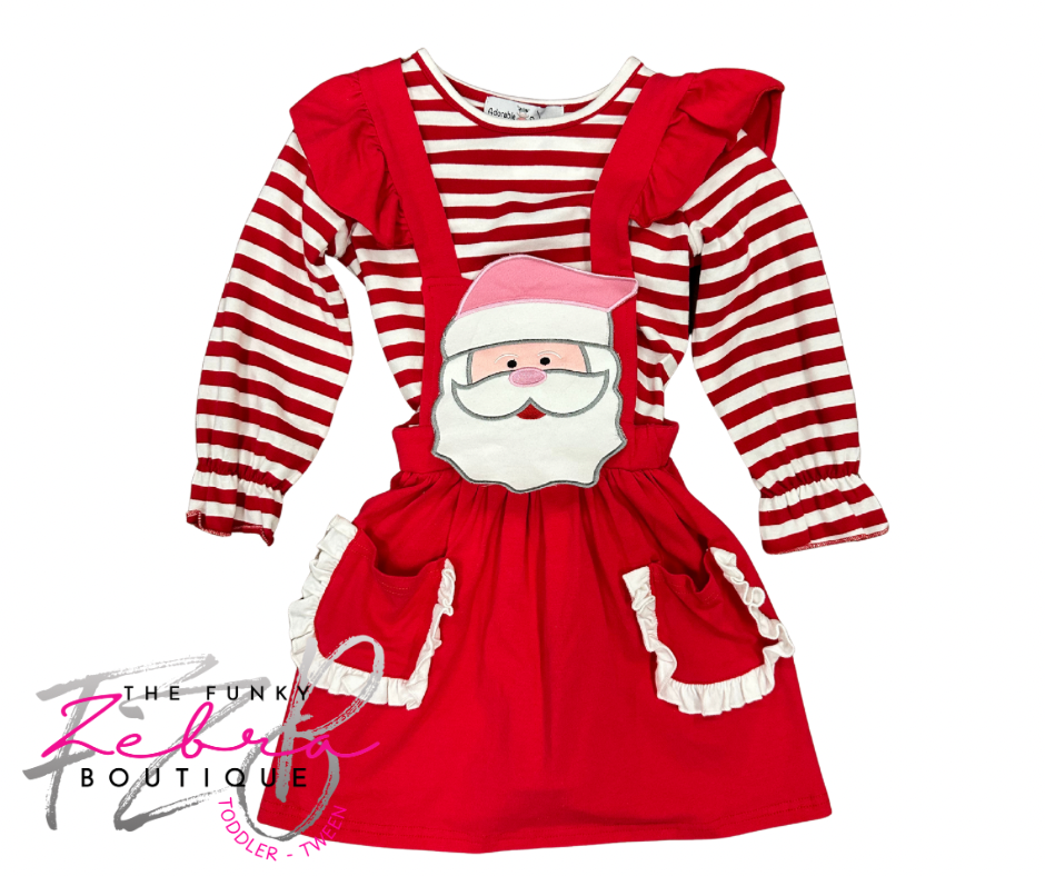 Christmas Santa Striped Ruffle Pocket Pinafore Set Size 3/4, 5/6, 7/8, 10/12