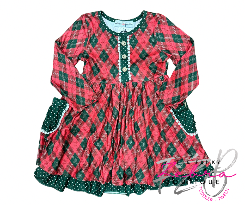 Christmas Red Green Plaid Ruffle Button Holiday Dress Size 3/4, 5/6, 7/8