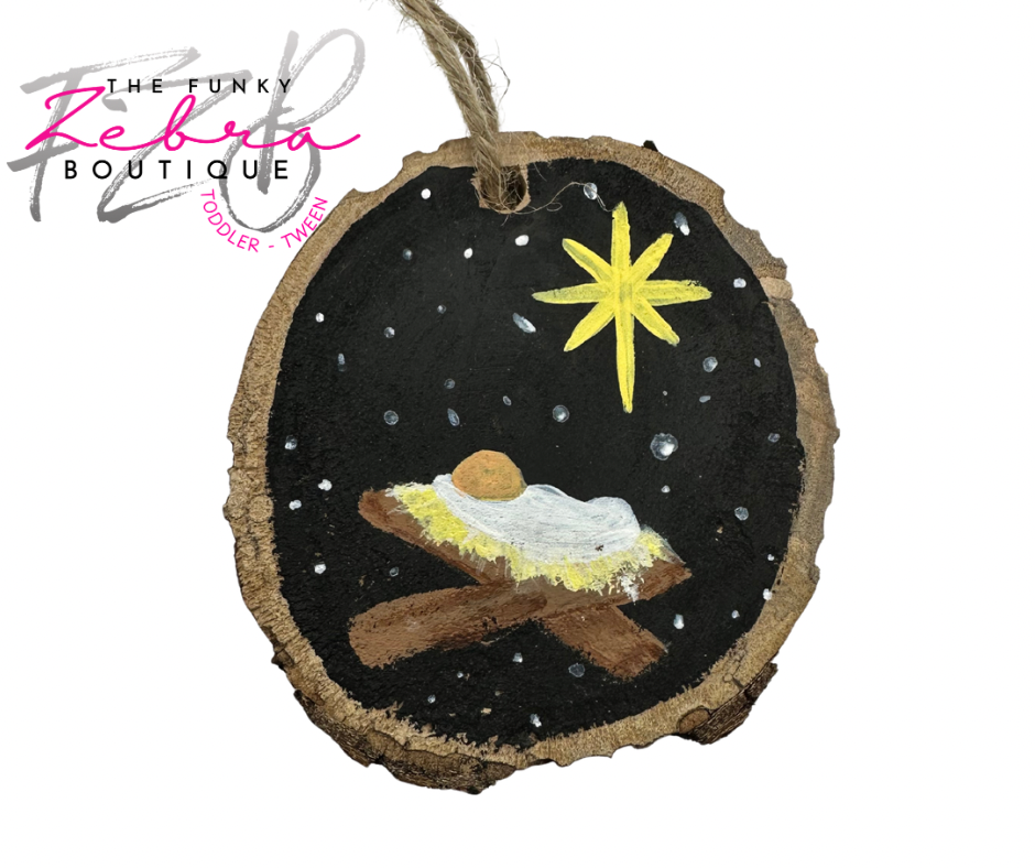 Christmas Baby Jesus Manger Hand Painted Wood Ornament