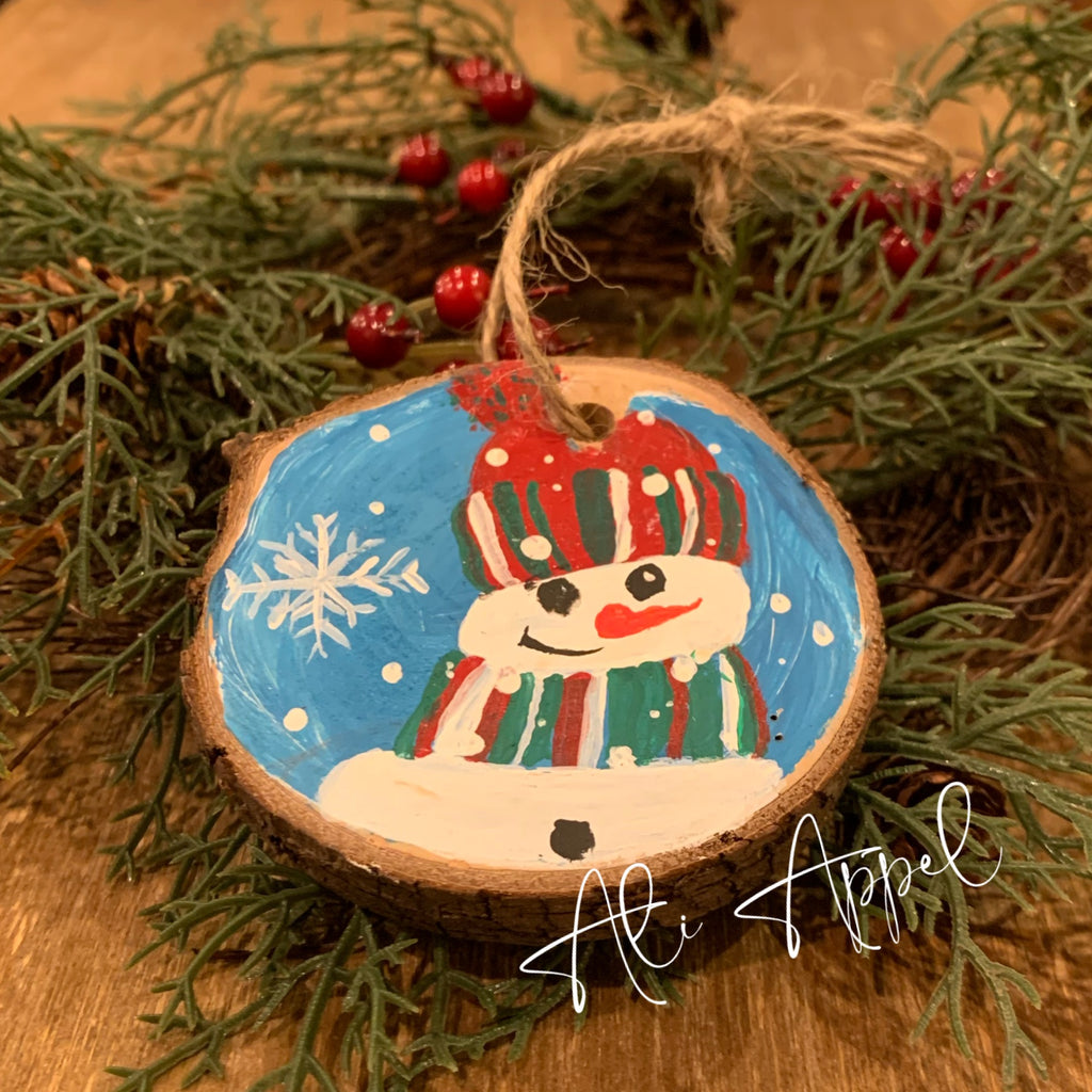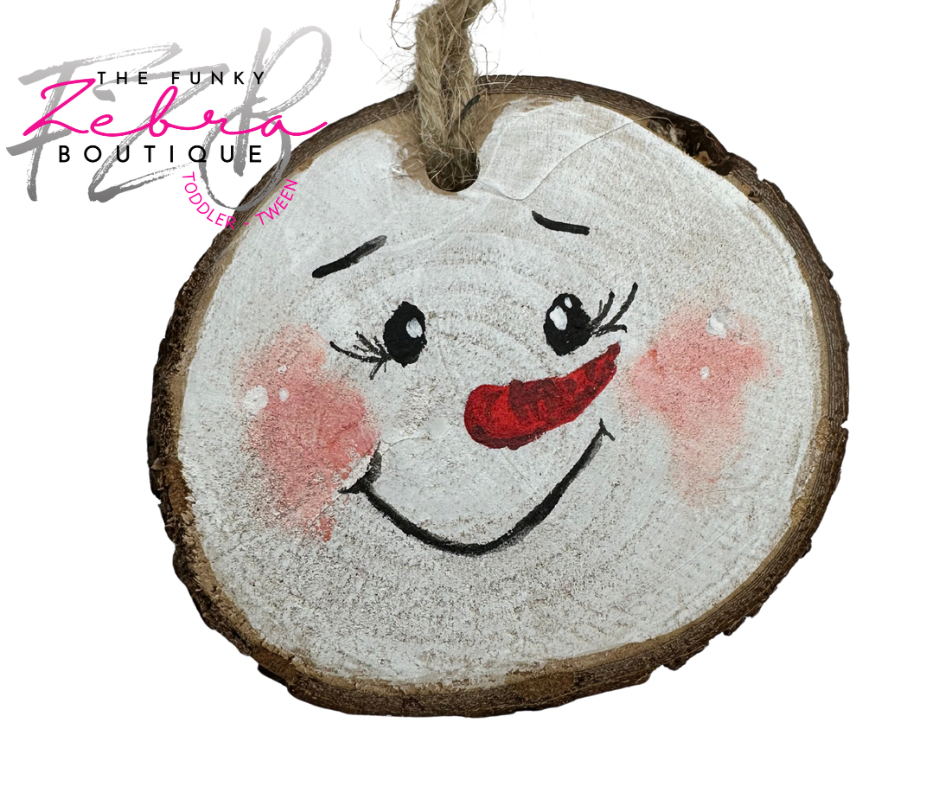Christmas Blush Cheek Snowman Hand Painted Wood Ornament