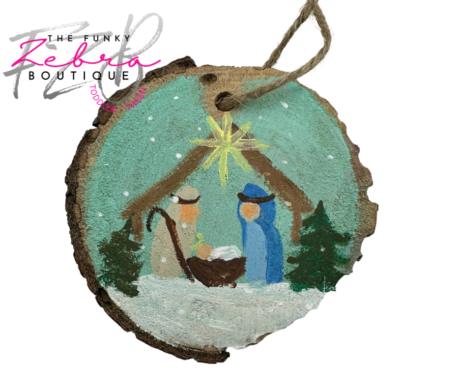 Christmas Nativity Scene Hand Painted Wood Ornament