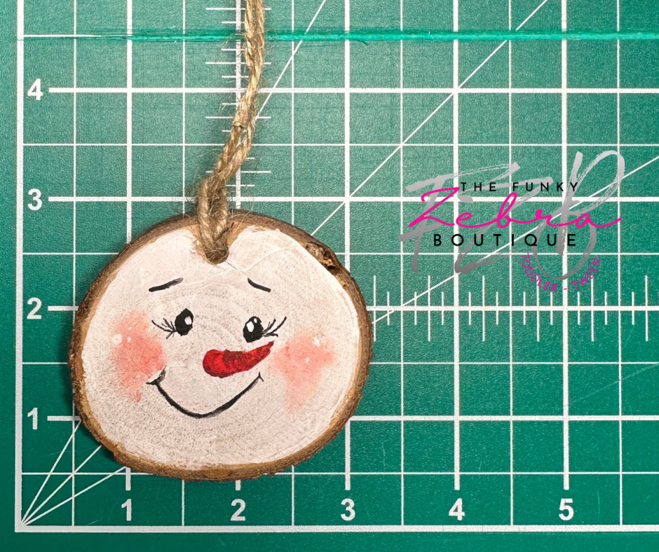 Christmas Blush Cheek Snowman Hand Painted Wood Ornament