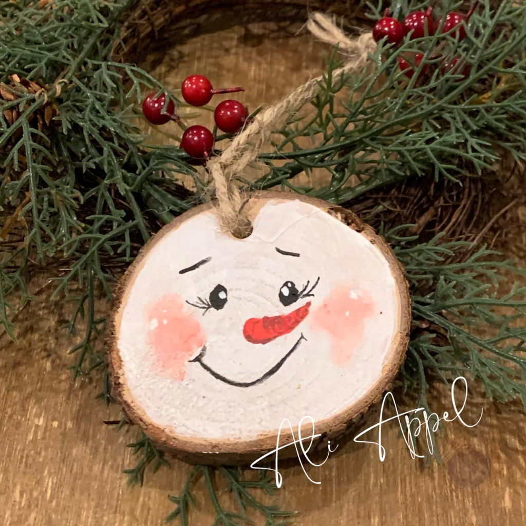 The most unique gift you can give. These locally sourced wood ornaments are all hand made! From the cut wood slices with raw bark edges to the hand painted design, each ornament is one of a kind.Β