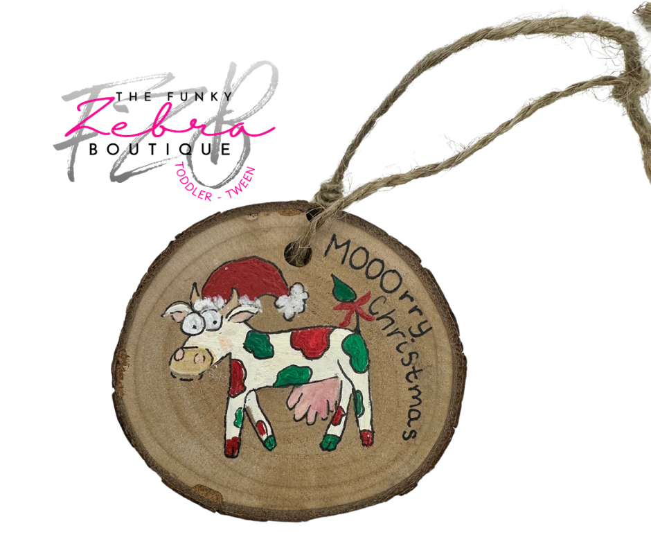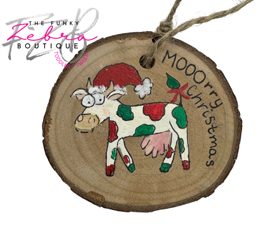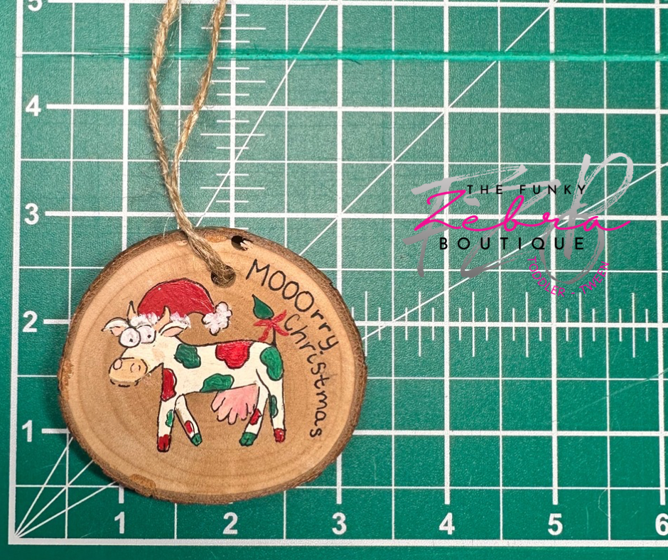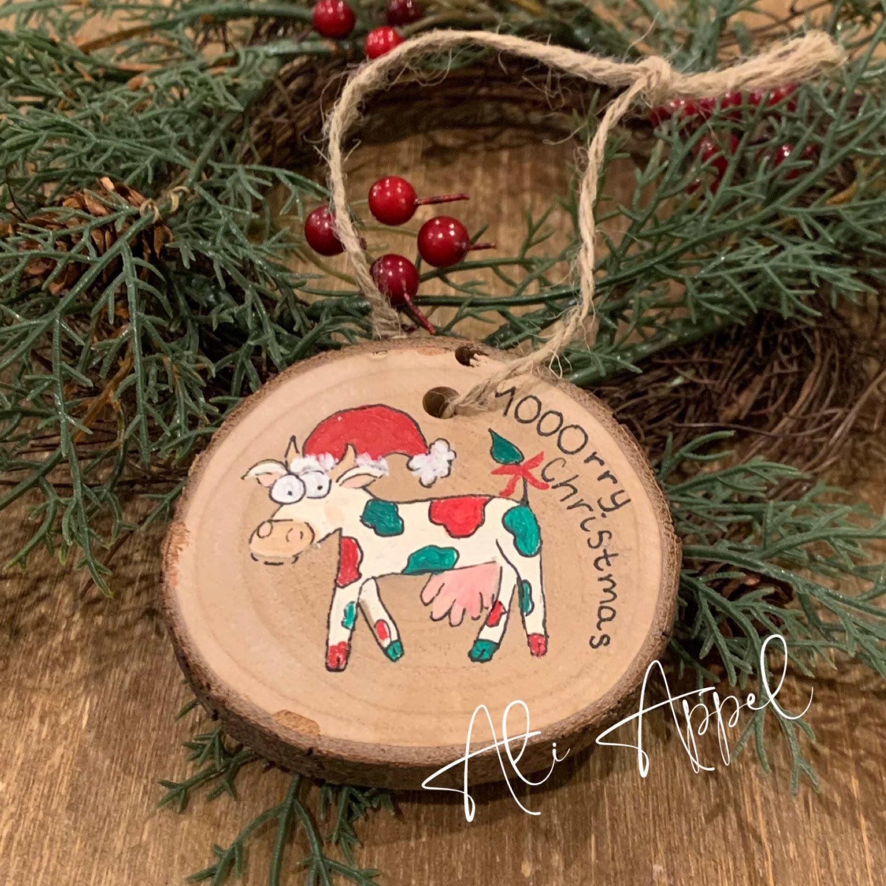 Moo Mooorry Christmas Cows Hand Painted Wood Ornament