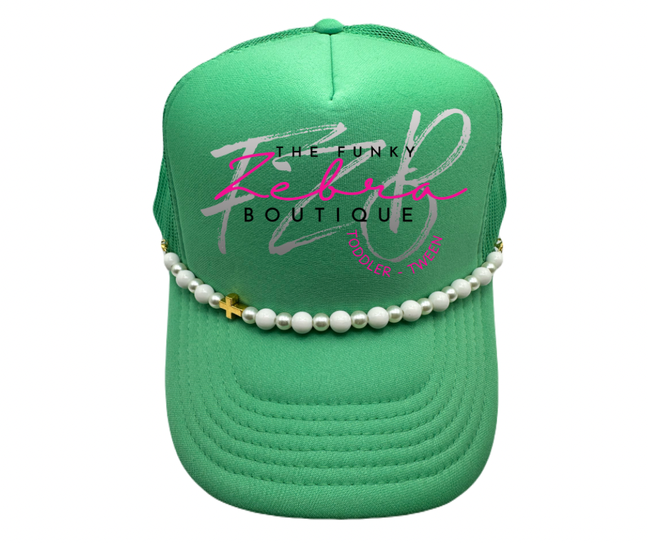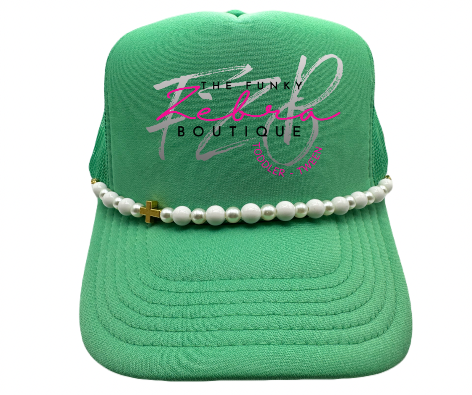 This hand beaded gold cross stretchy hat chain is a perfect accent for any hat.  The chain comes with lobster clasps for easy attachment to the hats mesh section.