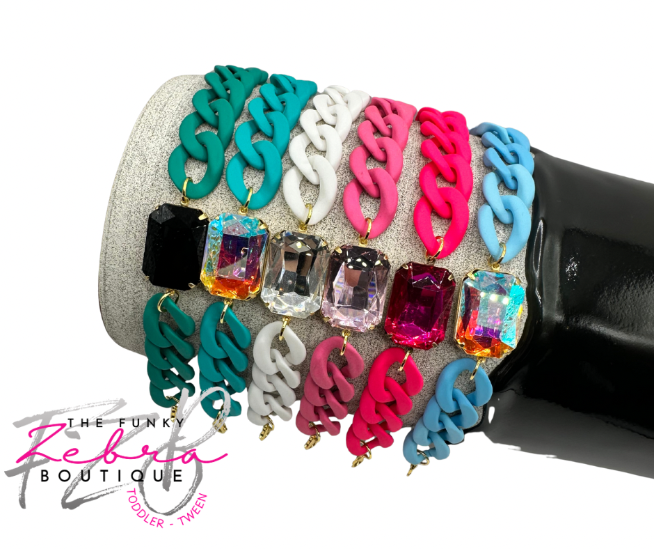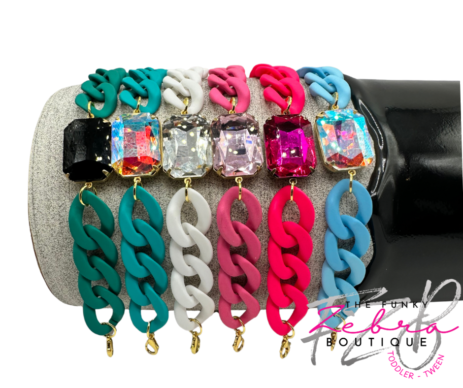 Hat Chain with Chunky Rhinestone Accent Small Linking Chain - Pick Your Color