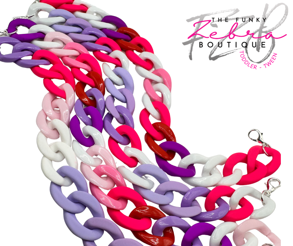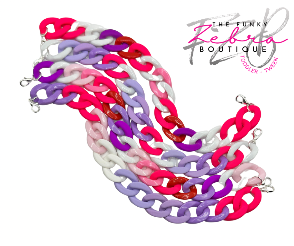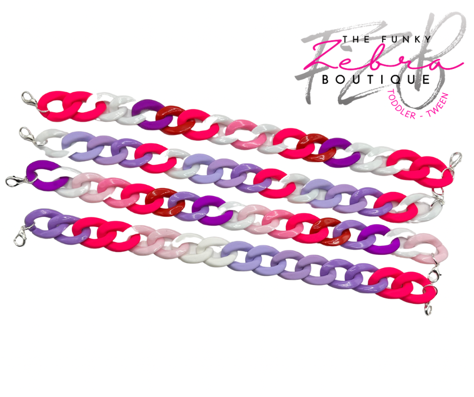 Valentine's Day Candy Pink and Purple Mixed Media Acrylic Linking Hat Chain - Pick Your Style