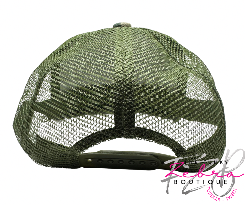 Simply stated, this single embroidered designer patch hat is perfect for boys. Adorned on a flat brim structured baseball style hat with mesh back a snapback adjustable closure.Β This hat fits kids size 3T-7/8 best.Β
