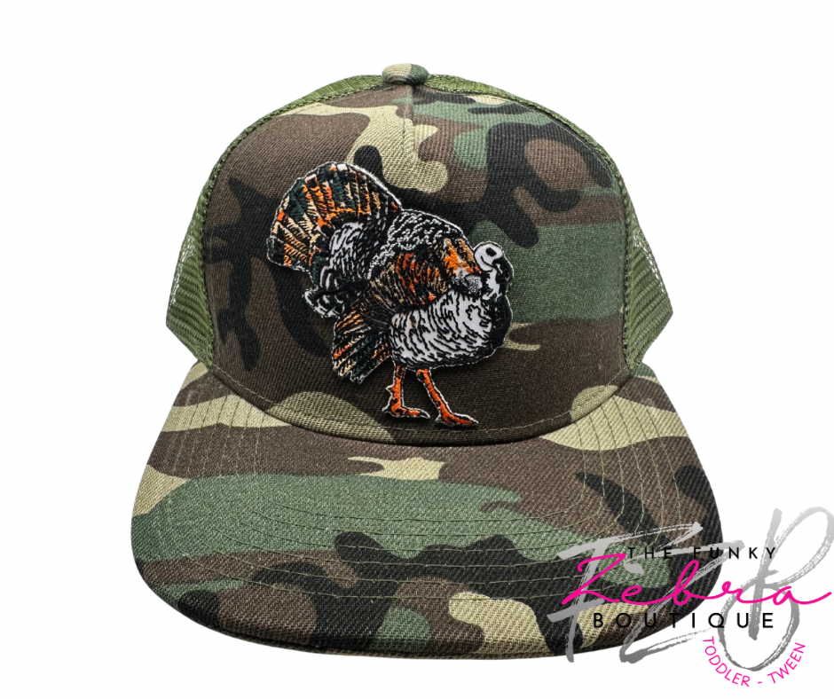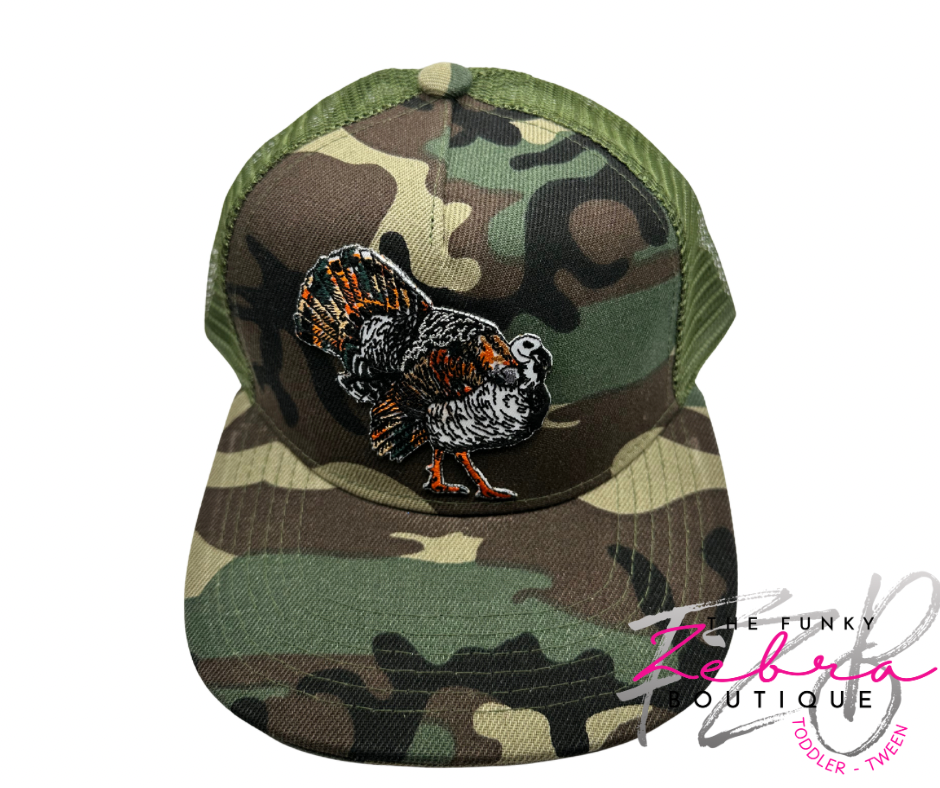 Kids Camouflage Turkey Flat Brim Baseball Hat - Fits 3T-7/8