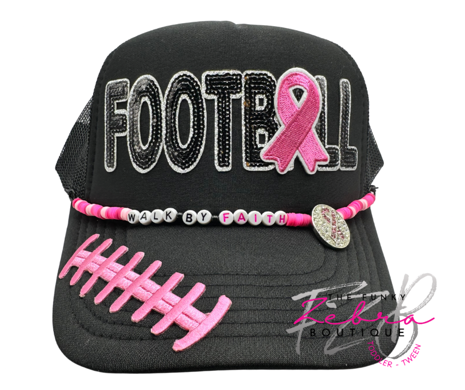 Adult Football Pink Out Breast Cancer Awareness Faith Black Foam Trucker Patch Hat