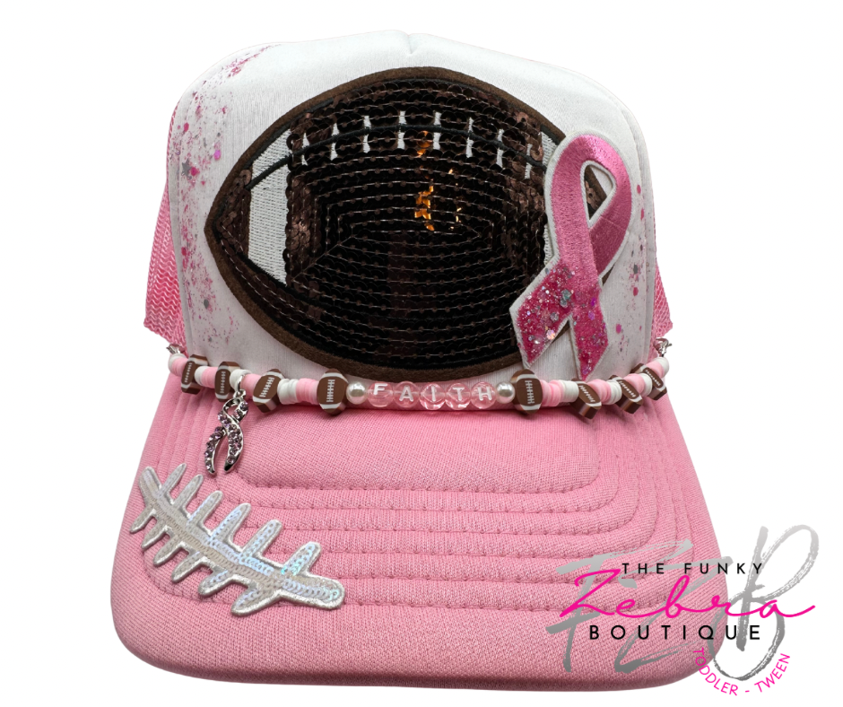 Adult Football Pink Out Breast Cancer Awareness Faith Light Pink Foam Trucker Patch Hat