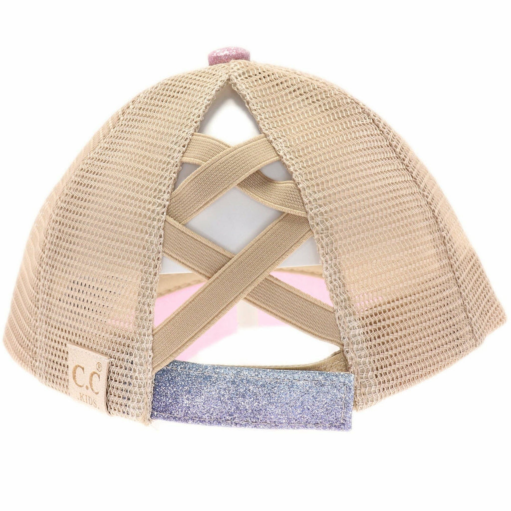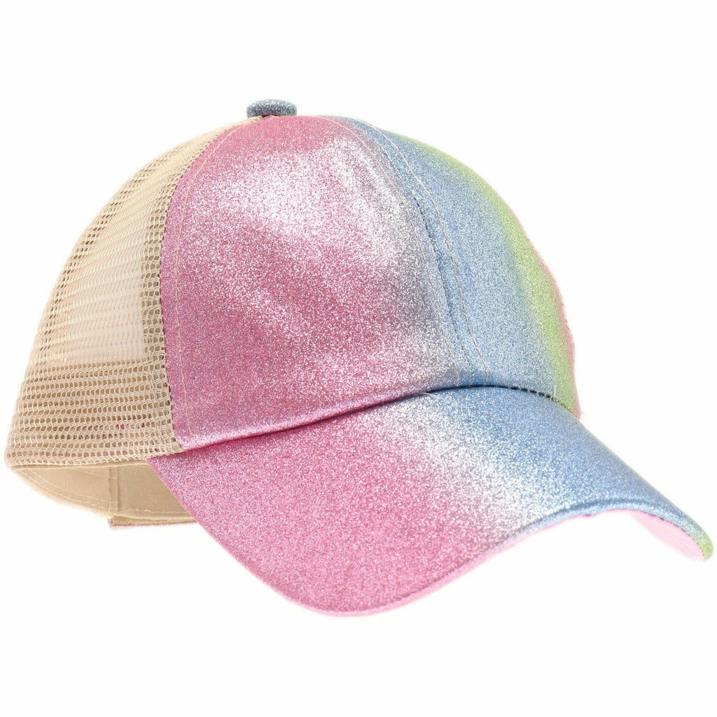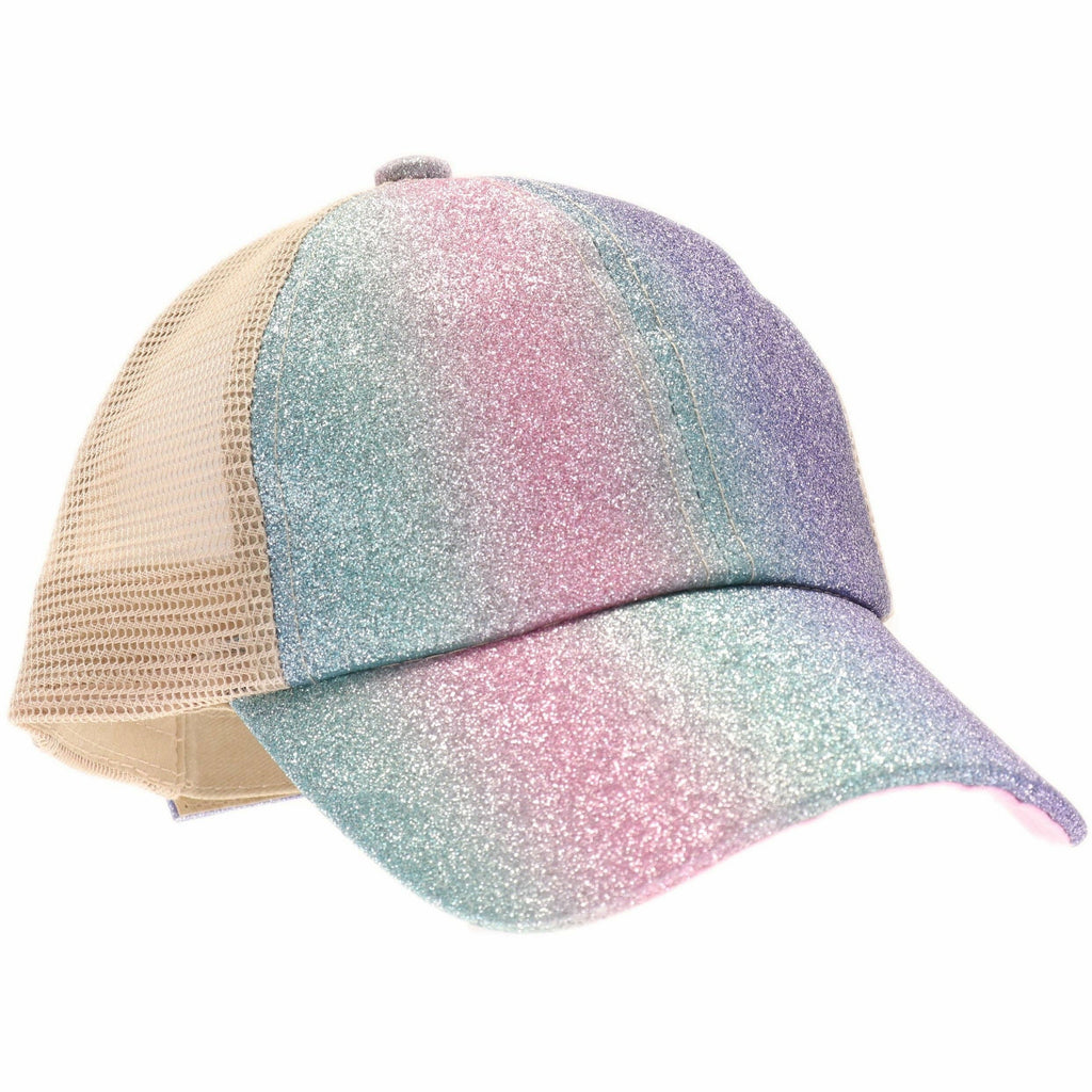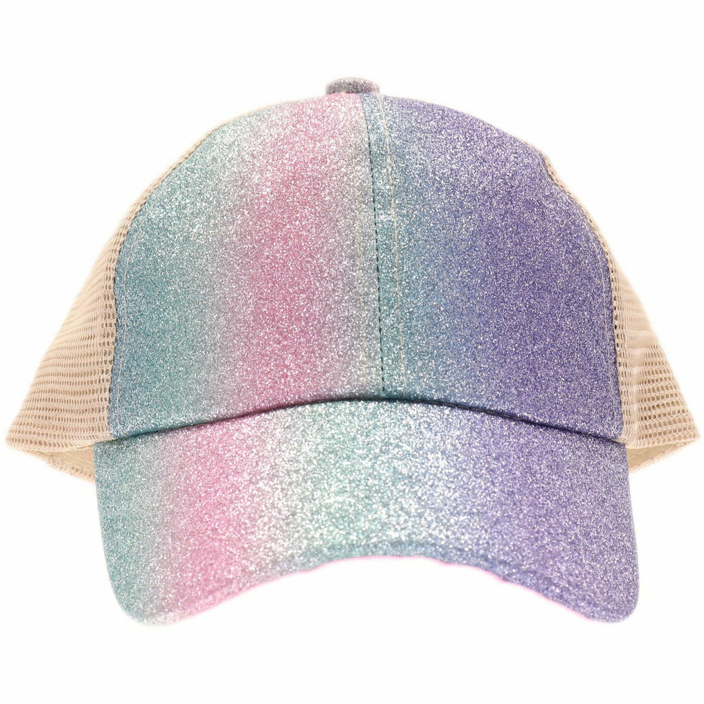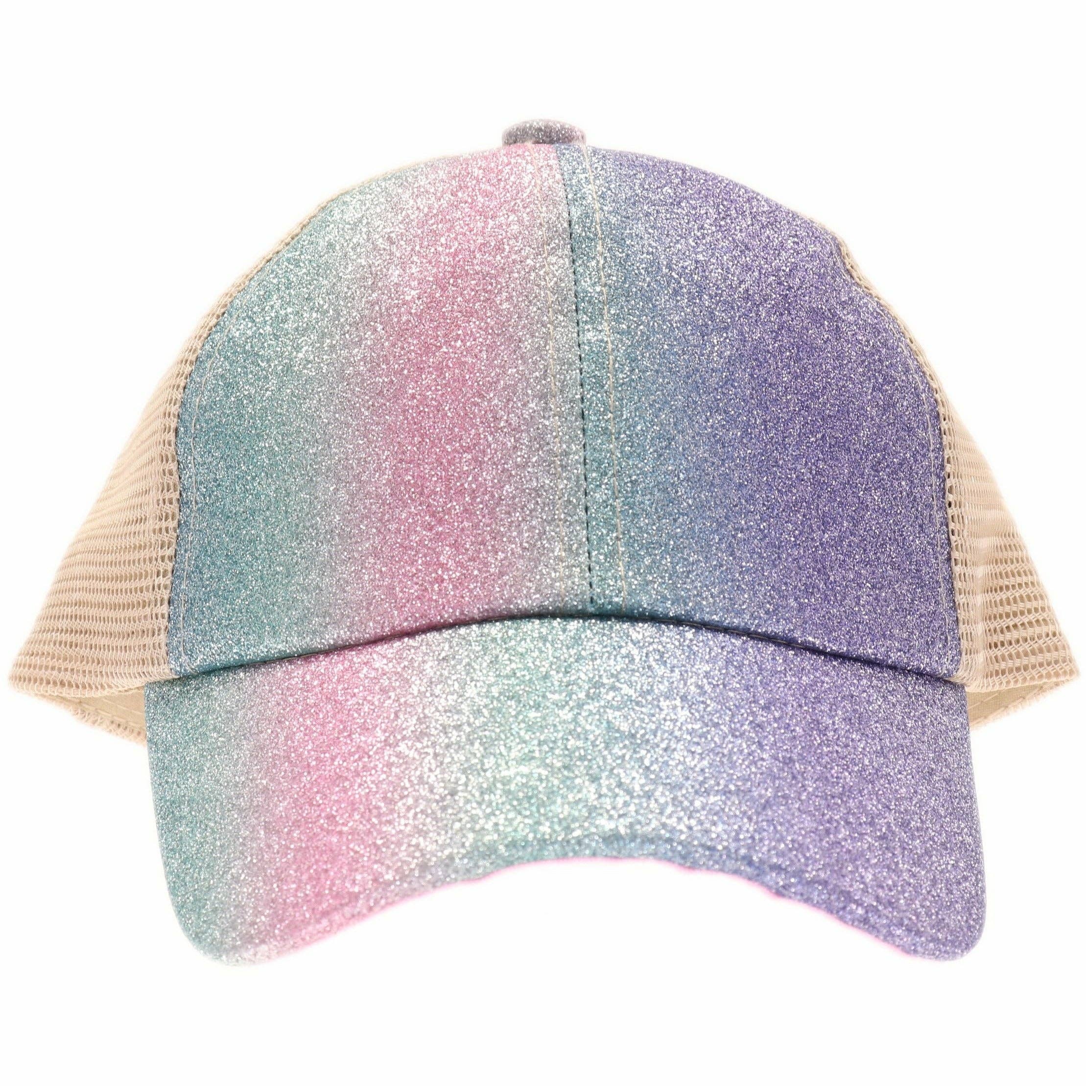 Kids Girls Shimmer Glitter Ombre Criss-Cross High Ponytail CC Baseball Hat Fits 3T-7/8 - Pick Your Color