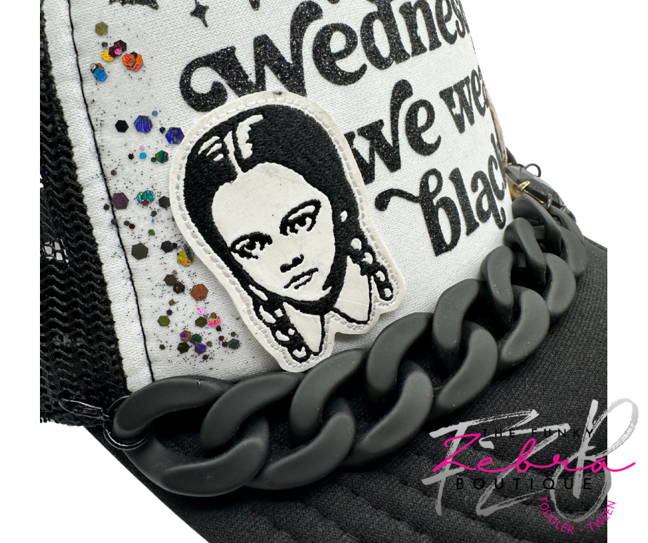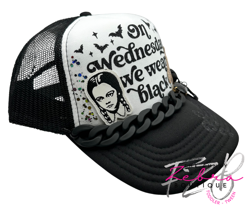- Black rubber with chunky black rhinestone linking chain hat chain