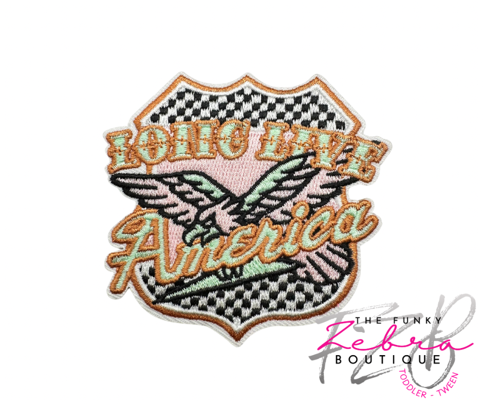 Patriotic Long Live America Checkered Embroidered Iron On Patch