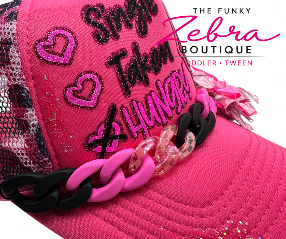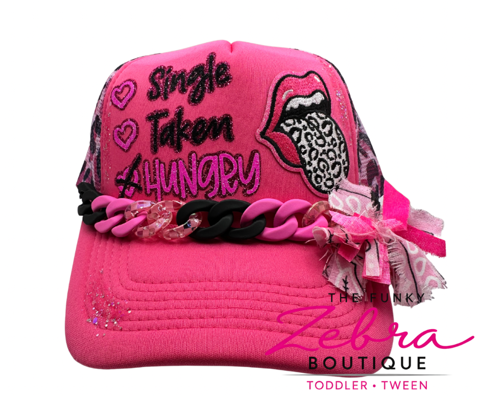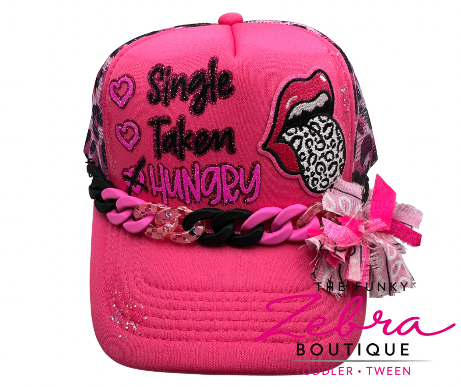 Adult Valentine's Day Single Taken Hungry Hot Pink Foam Front Leopard Print Mesh Trucker Hat