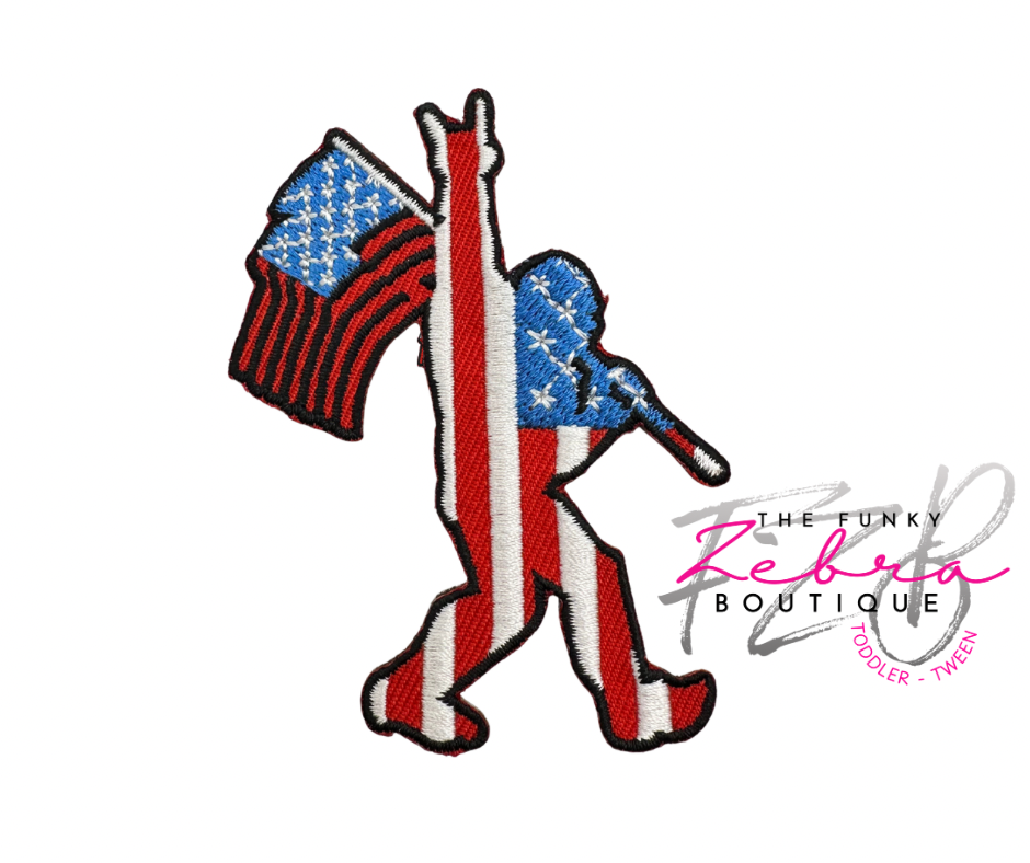 Patriotic Peace Flag Carrying Squatch Iron On Trucker Hat Patch