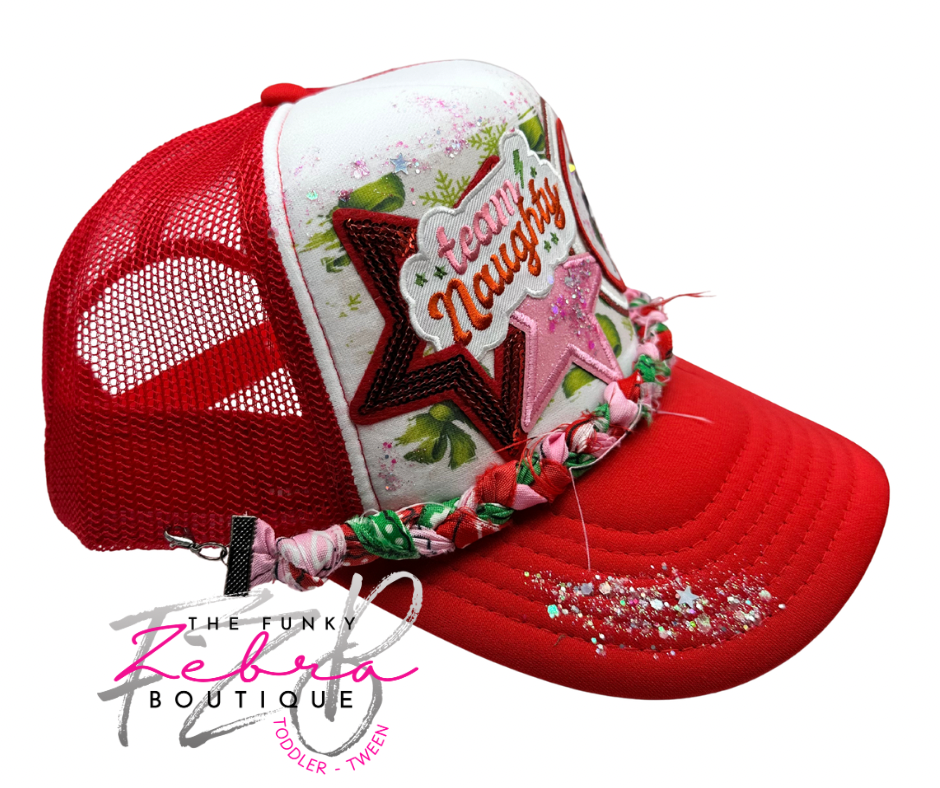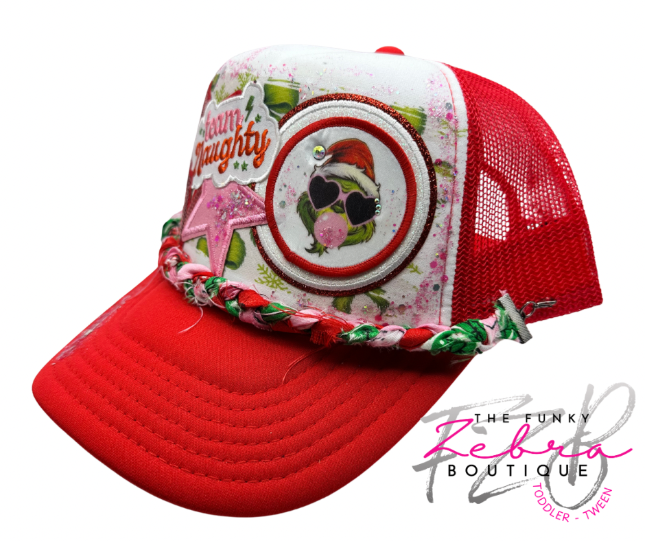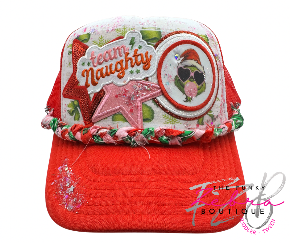 Team Naughty Green Furry Bow theme foam trucker hat.