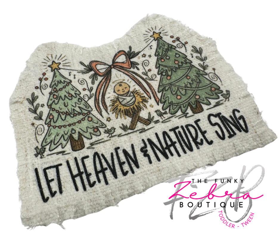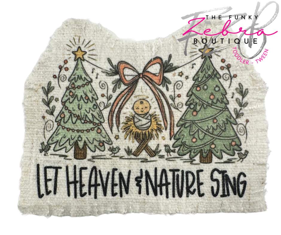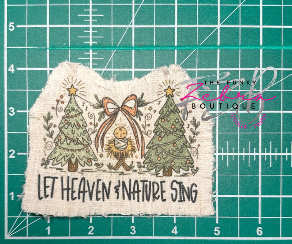 Christmas Shabby Distressed Let Heaven and Nature Sing Manger Fabric Iron On Patch