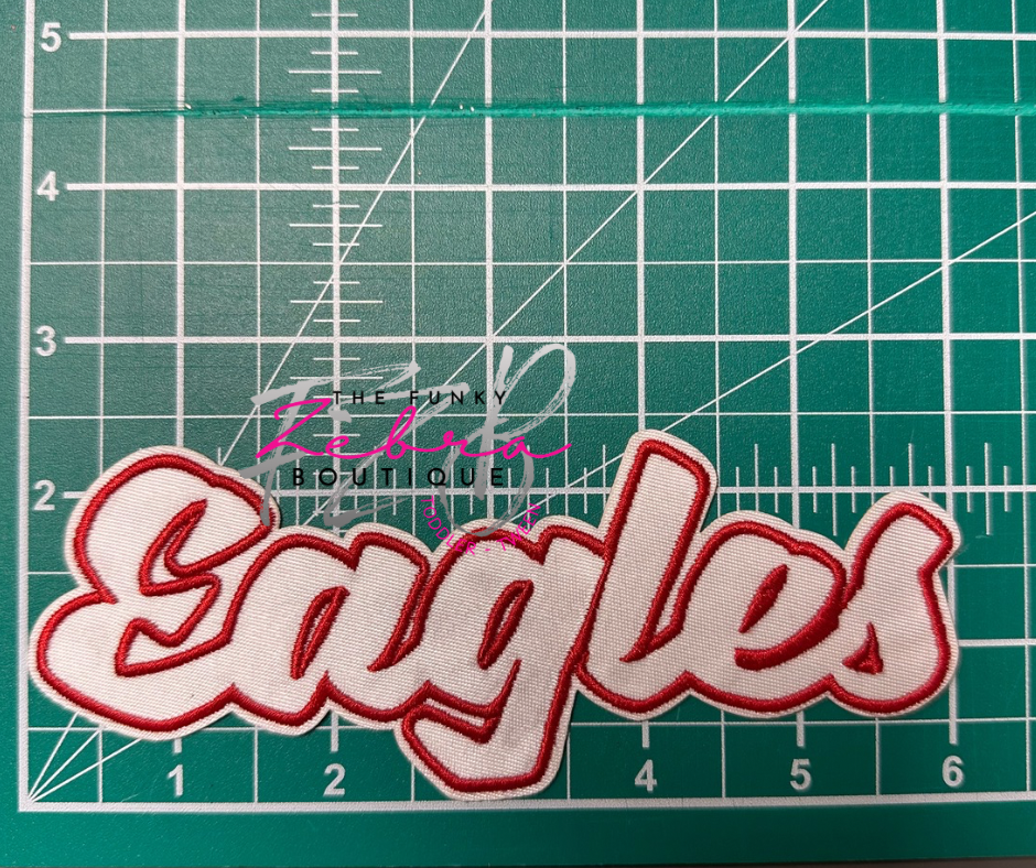 Eagles Red and White Large Embroidered Iron On Patch 6" x 2.5"