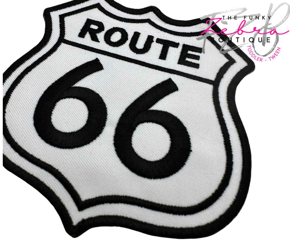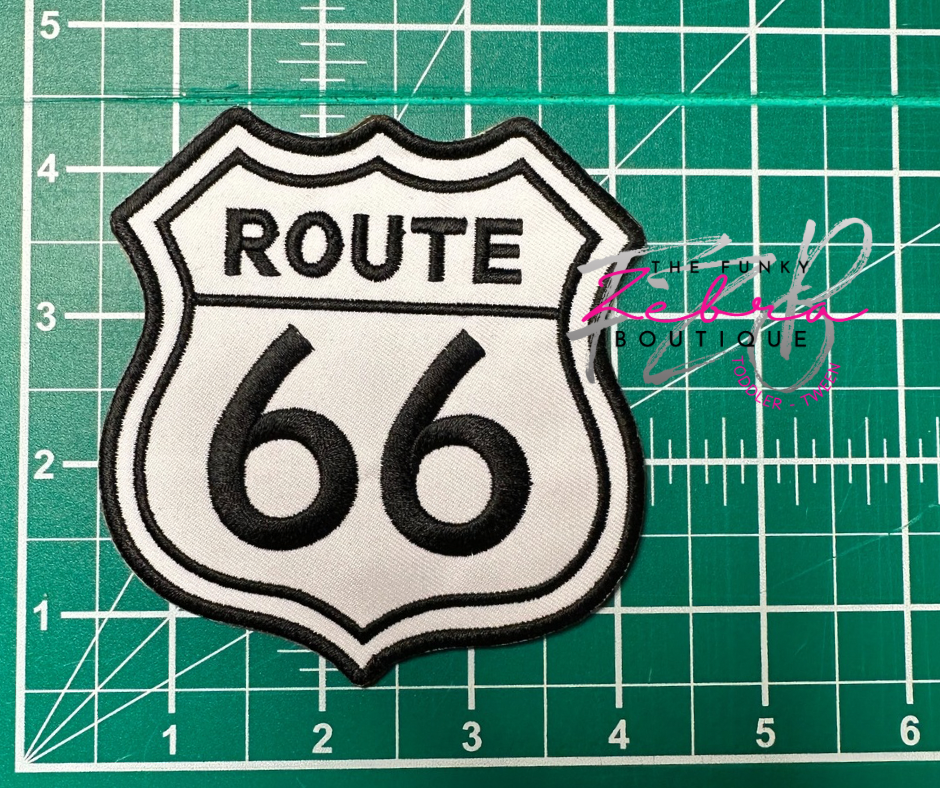 Featuring a heat- sealed backing. This means that the patch may be ironed on or sewn on to most clothing easily. White twill background with black embroidery.