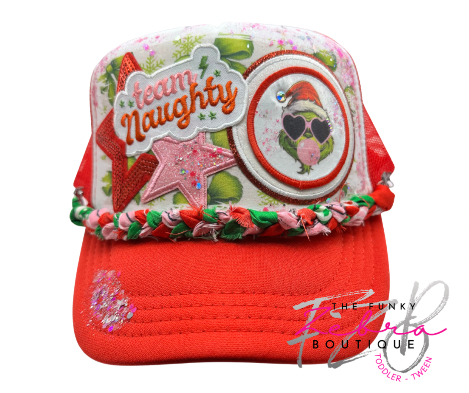 Young Adult Team Naughty Christmas Red Foam Trucker Hat Fits 7/8-Tween