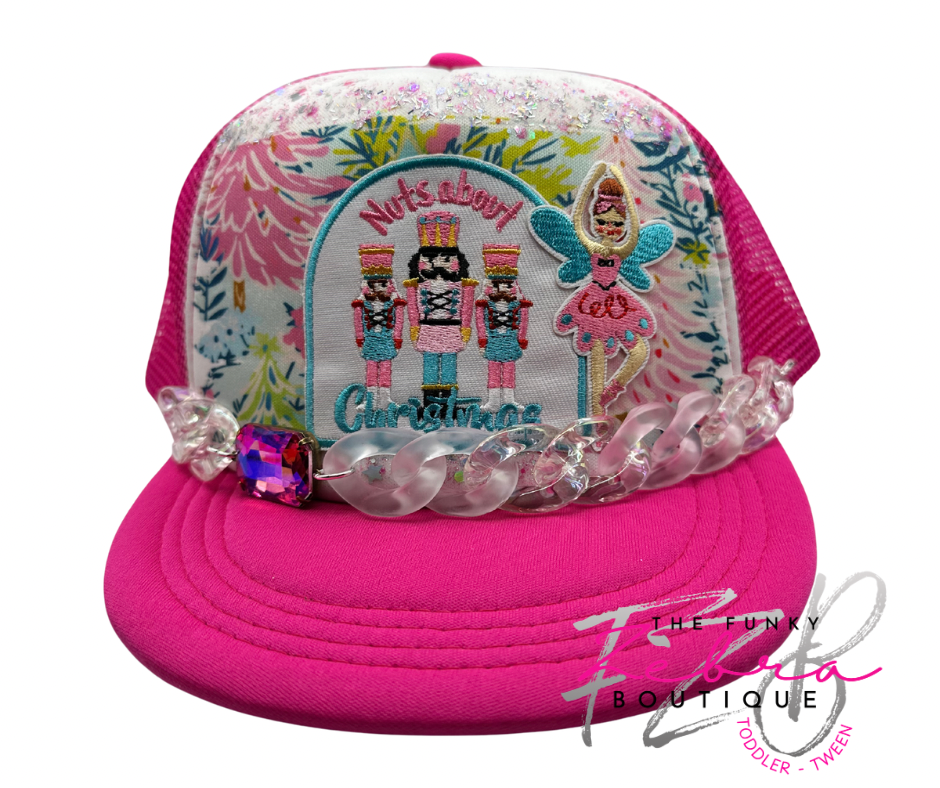 Kids Nutcracker Nuts About Christmas Hot Pink Foam Trucker Hat Fits 3T-7/8