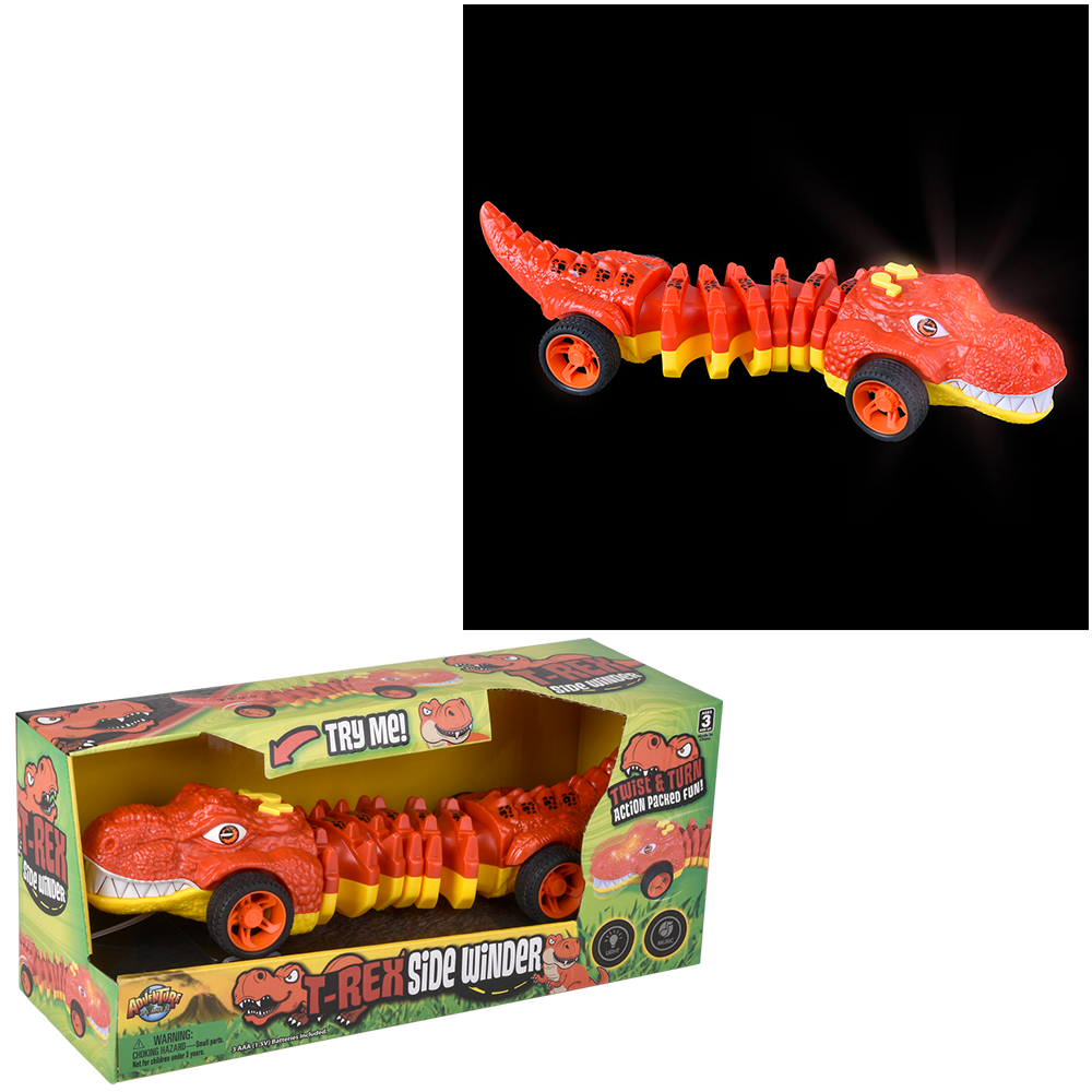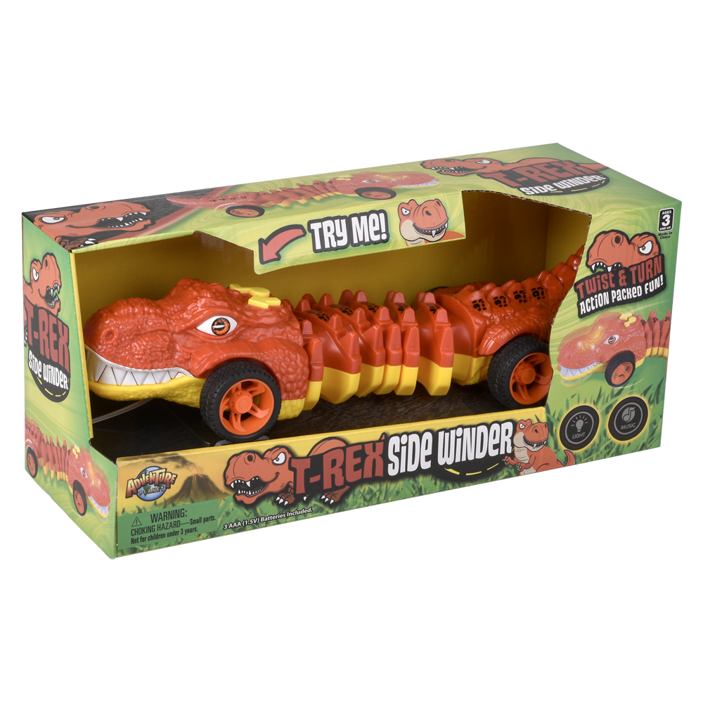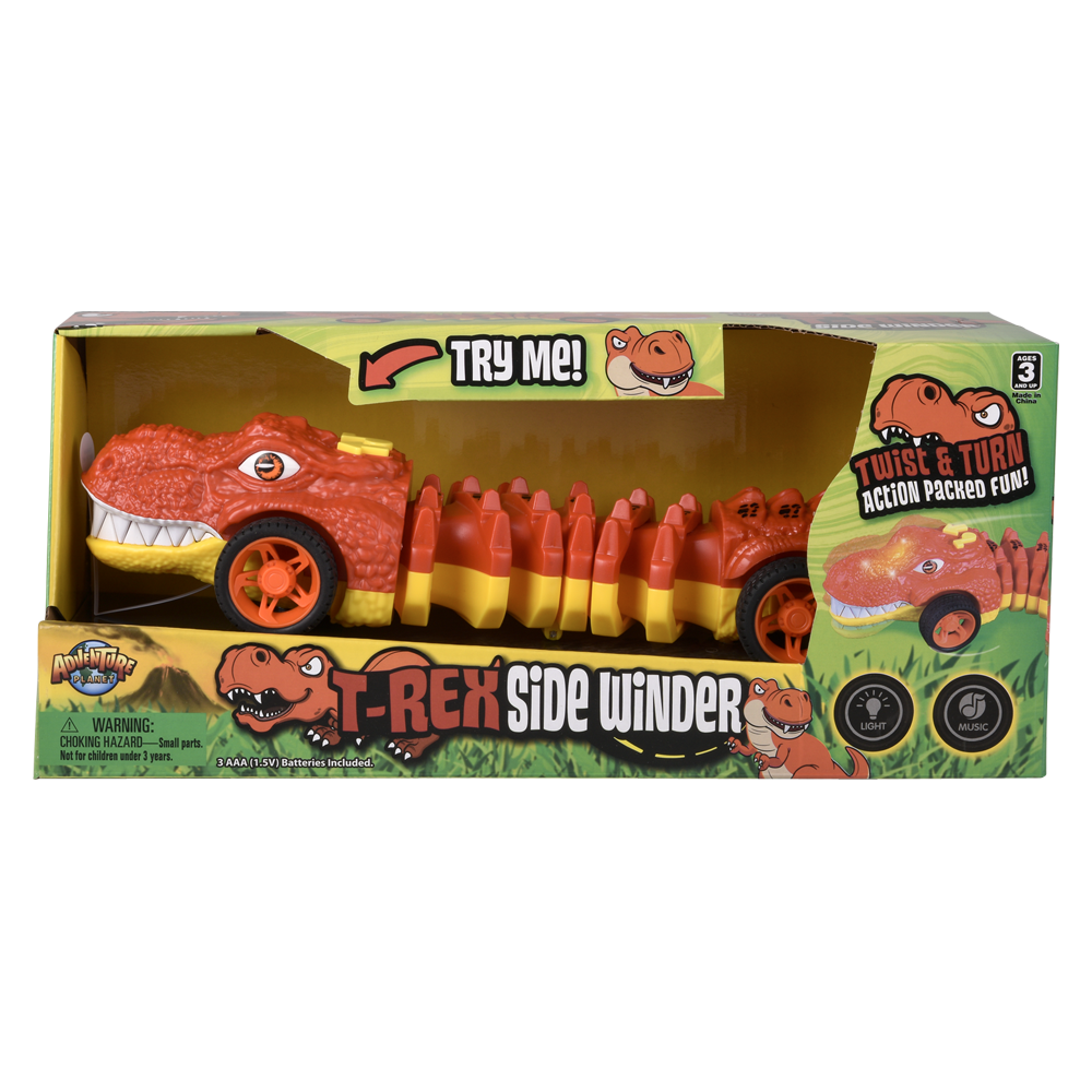 Our Tyrannosaurus Side Winder twist and turn for action-packed fun! These awesome toys move on their own, wiggling and twisting as they go. Multiple sounds and their eyes light up! 3 AAA Batteries Required. Batteries Included.