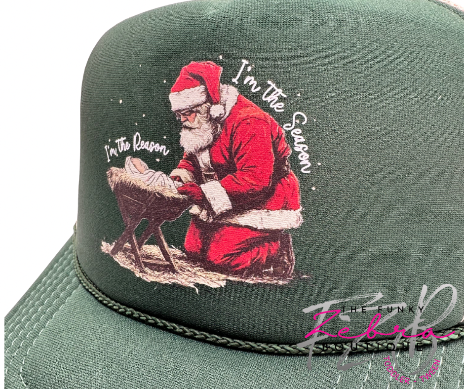 Adult Christmas DTF I'm The Reason For the Season Santa Manger Green Foam Trucker Hat