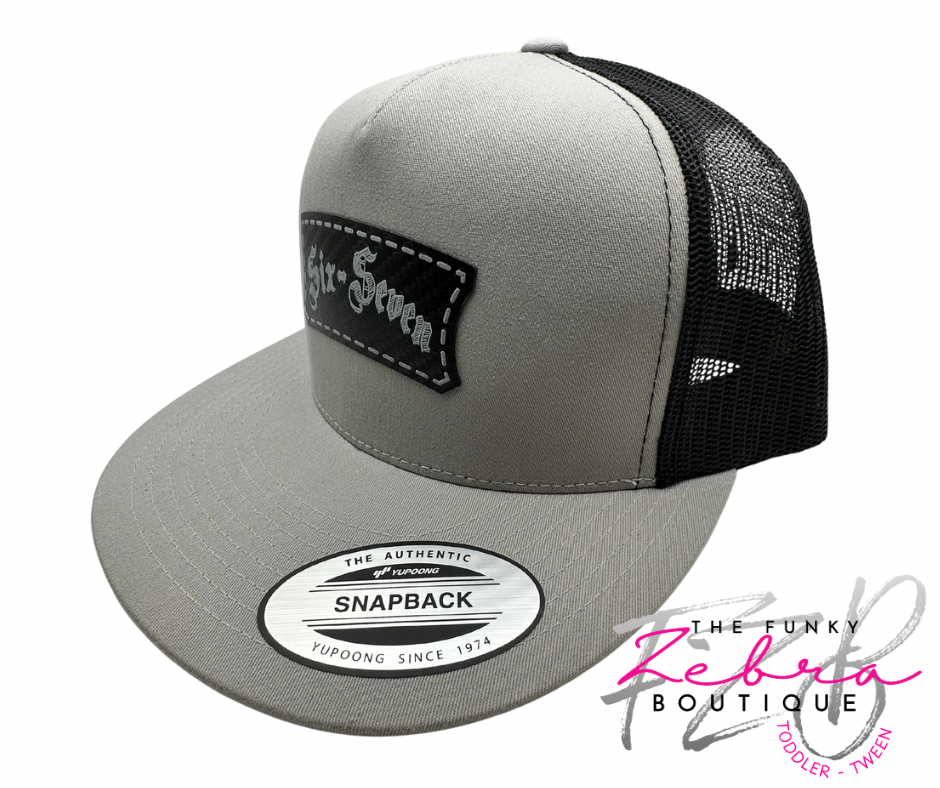 Adult Six Seven Black Leatherette Patch Grey Flatbill Baseball Hat