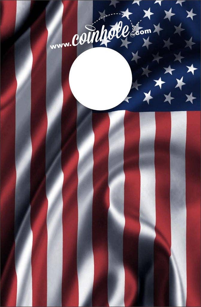 Handmade American Flag Coinhole® game set. Miniature tabletop version of corn hole played by bouncing coins, instead of bean bags on a wood game board. Featuring a Stars and Stripes design, perfect for display when not in playing. Heavy duty and build to last, great travel size game perfect for home or office. Easily fits inside a backpack or handbag.
